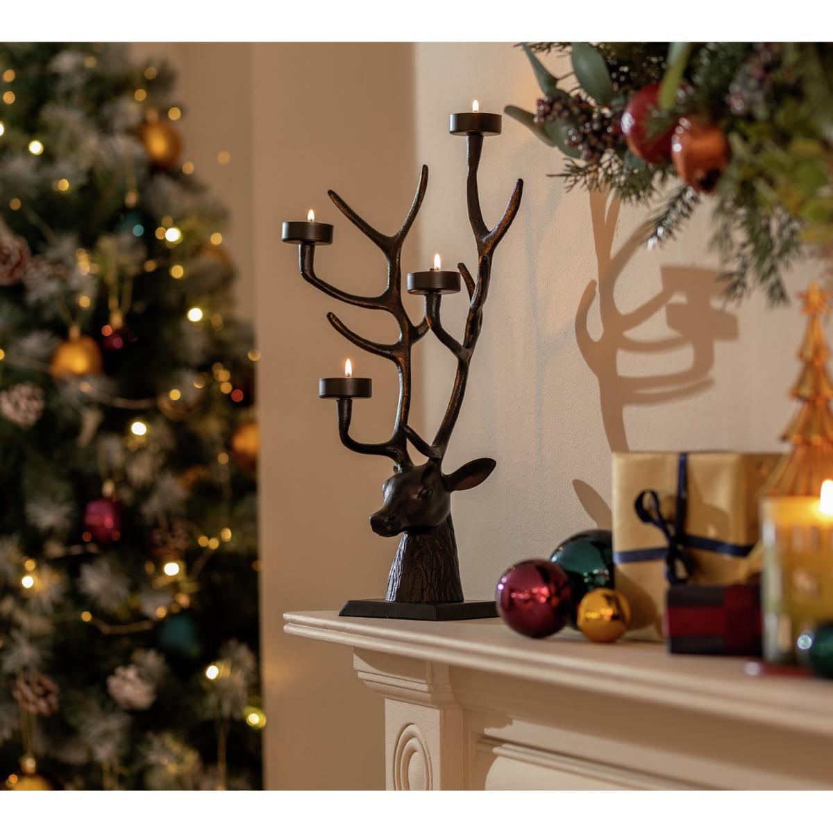 Make our stag tealight holder the crowning glory of your seasonal ornaments. With an impressive set of antlers carrying 4 holders, this is an artistic and decorative piece. Why not frame your fireplace mantel with one stag either end? A lovely decoration not just for Christmas but all year round.