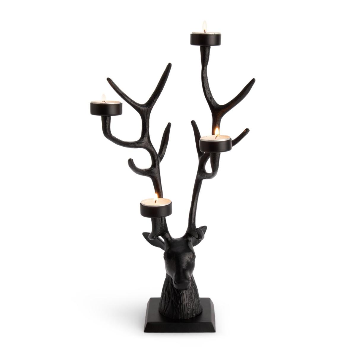 I love this stag-shaped tealight holder for its sculptural and slightly whimsical appeal; it adds an interesting focal point without overwhelming a space. It works well in both contemporary and rustic interiors, especially when paired with natural textures like wood, leather, or woven fabrics. Practical styling tips include placing it on a mantelpiece, side table, or within a layered table setting for cosy evenings. For added impact, group it with other candlesticks or candles in varying heights to create a visually dynamic display. Its dark silhouette makes it versatile enough to stand out against lighter backgrounds or blend seamlessly into darker, moodier interiors.