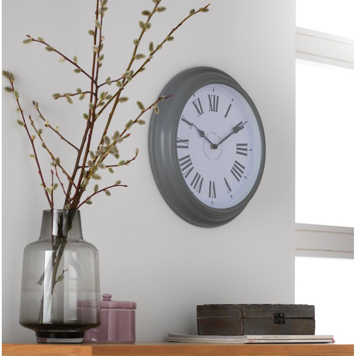With quartz accuracy, this stunning timepiece is every bit a classic clock with its roman numerals and traditional minute and hour hands. In an elegant grey tone, it will effortlessly blend into any room and any decor, offering timeless appeal for your home.