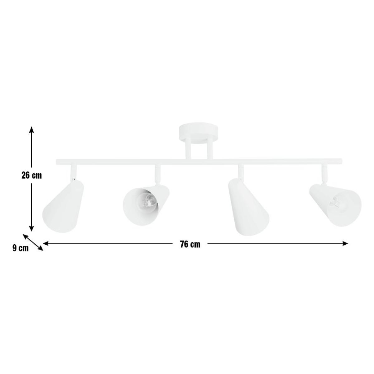 Directional lighting just got smoother. Clean crisp and uber cool, that's our matt white 4-spot bar. The contemporary shades are designed to show off retro style Edison bulbs. And each conical shade can be angled to throw down focused light just where you want it. Dimensions: Size H26, W76, D9cm. Bulb Information: Bulbs required 4 x golfball E14 small edison screw LED (not included). Recommended maximum wattage: 10 watts. Can not be used with a dimmer switch. LED bulb only. General Information: Steel. - not suitable for bathroom use. Weight: 1kg. Minimal assembly. Product is hard-wired into electrics. Manufacturer's 1 year guarantee.