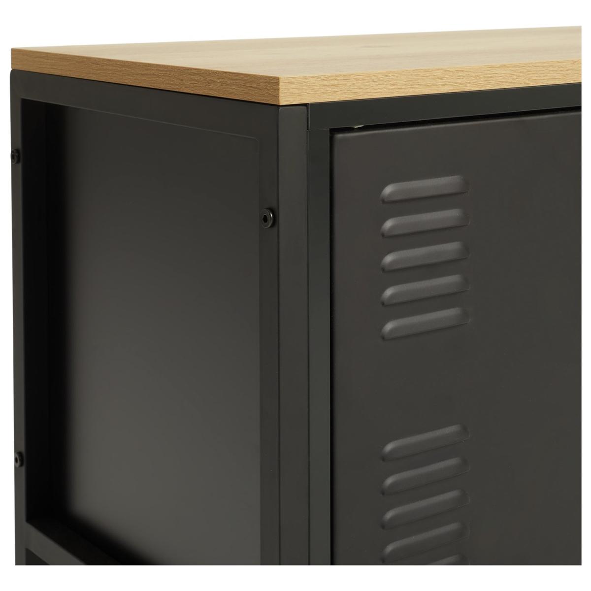 Steel style lockers are the height of urban cool. Totally retro. That's why our Stevie black TV unit is loved by fans of loft living. With 2 media storage sections, 2 hideaway doors and easy cable access it is industrial chic at its best. Topped with a wood effect shelf that will take up to a 65 TV. Part of the Stevie collection. Made from steel and MDF with a wood effect finish. Size H 51.5, W 150, D 35cm. Weight 33kg. 3 shelves. 2 doors. Black handles. 2 media storage sections. Largest height of media equipment sections 15.25cm. Easy cable access. Suitable for screen sizes up to 65in. Maximum weight of TV 25kg. Self-assembly - 2 people recommended. Package Dimensions: Package 1 dimensions: H21, W59.5, D40cm. Package 1 weight: 14.55kg. Package 2 dimensions: H11, W40, D158.5cm. Package 2 weight: 22.5kg. General information: We are excited to be welcoming some of our favourite HOME products into the Habitat range. Your product may arrive in Habitat or HOME packaging.