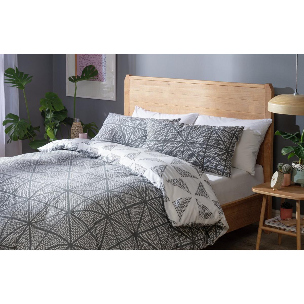 Love a bit of Scandi style? Bring it home with this smart, contemporary king size bed set in grey. Featuring a simple, geometric pattern, it's as modern as they come. With a reversible pattern it's versatile too. Just flip it when you fancy a quick refresh. Made in polycotton and fastened with buttons.