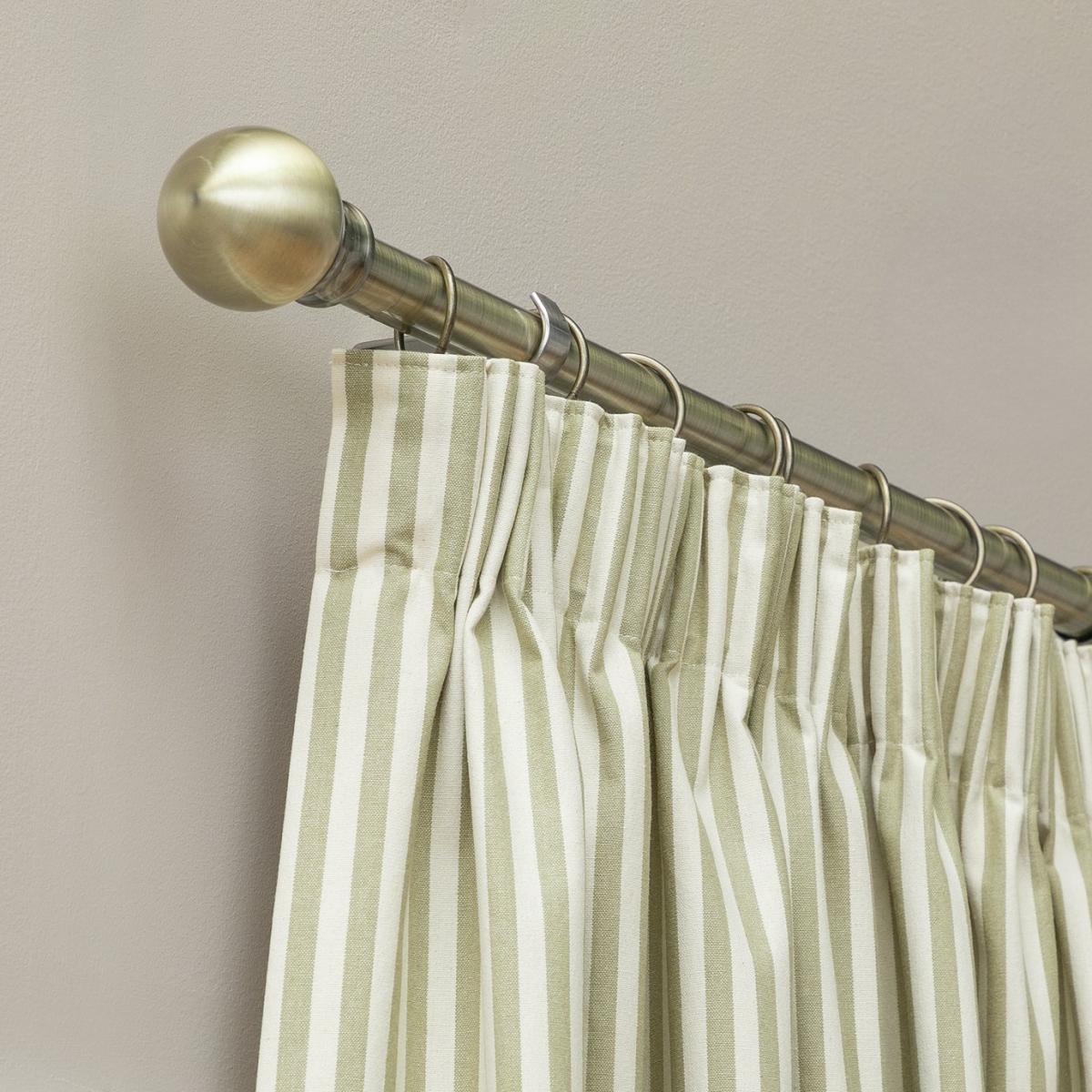 Invite the green in. Keep the light out. Our olive dye stripe curtains add depth to any room. Made from a soft 60% cotton blend so the drape is easy and natural. No fuss, just flow. And when you feel like blocking out the world, the blackout lining means business. Switch closed and switch off. Features Green Stripe design. Made from 40% polyester and 60% cotton. Blackout. Lining made from 100% polyester. Dimensions Size 168cm (66 inches) wide by 183cm (72 inches) drop. Width refers to one curtain panel before hanging. Dimensions provided include header tape. General information Curtain hooks/ rings included. Suitable for curtain poles. Suitable for curtain tracks. 30C machine washable. Not suitable for tumble drying.