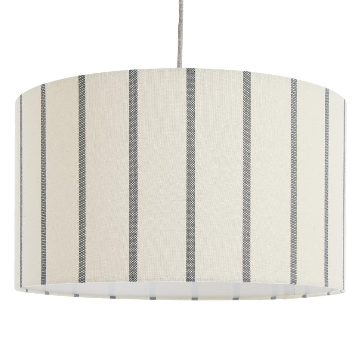 Take it easy with our cream and grey striped shade. Soothing pattern on a classic drum shape, this linen-like shade is at home with lots of palettes and decor styles. It's simple to fit too. Whether it's for the ceiling or for a lamp, it works with both. Hey, why not get a pair for some cool coordination mood mood-setting ambience? Now there's a thought. Made from faux linen. Size H25cm, Diameter 45cm. Recommended maximum bulb wattage 15 watts. Fully assembled. Easy fit shade. Manufacturer's 1 year guarantee.