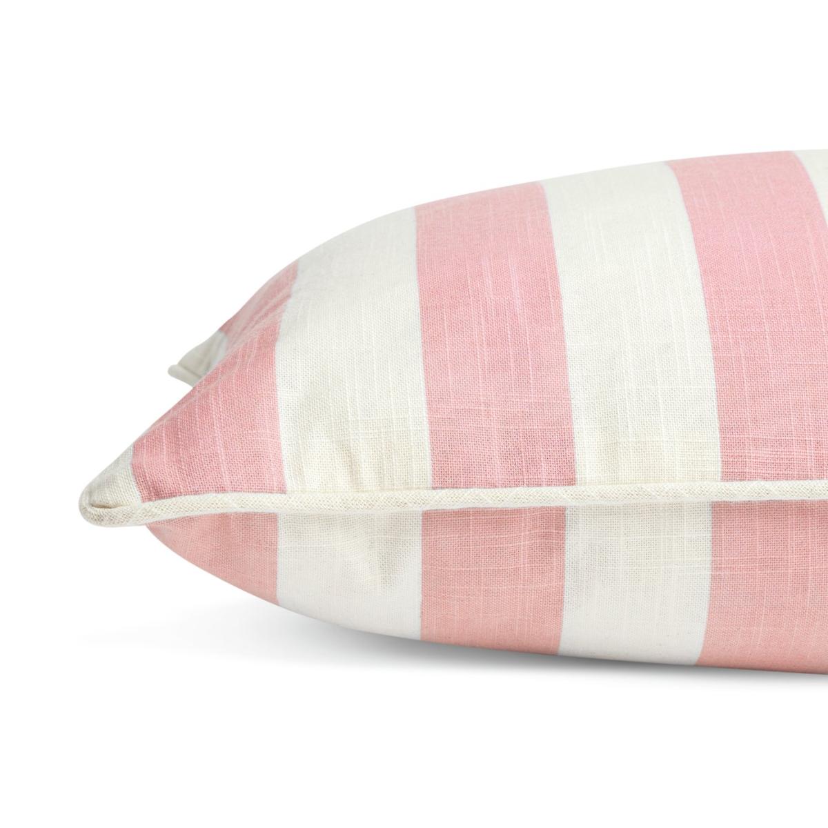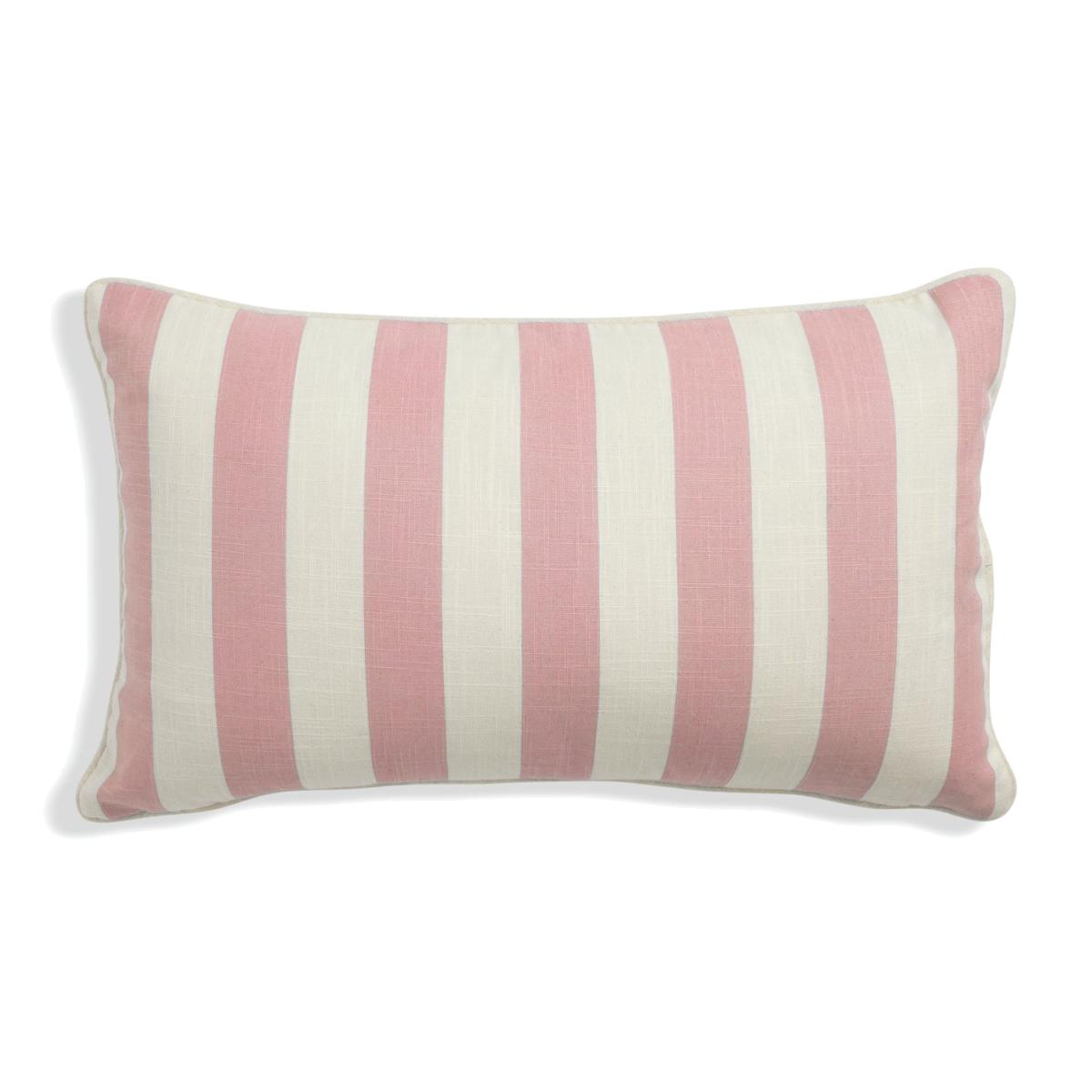 Our fun-loving powdery pastel striped cushion will transport you straight into summer. Bright and fresh with a touch of Miami glamour. Perfect for inside and out. In 100% pure cotton with piped edge and zipper cover. Happy days. Front & Back stripe printed cushion with plain piping along with exposed zipper. Zip fastening. Cover 100% Cotton. Filling 100% filled cushions. Size L50, W30cm. This cover is machine washable.