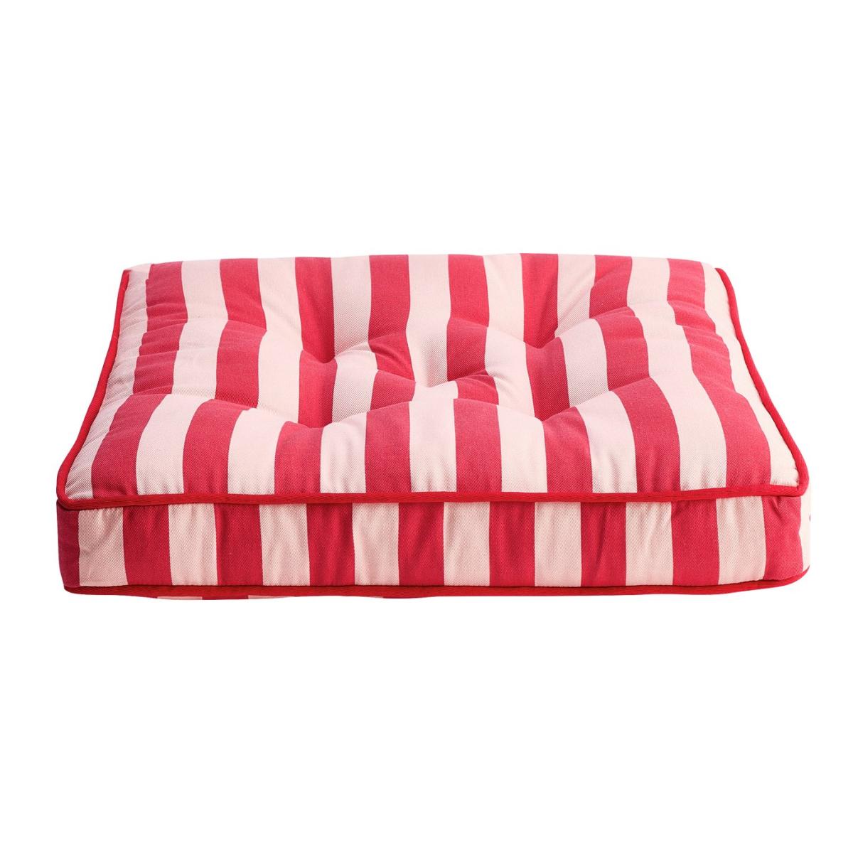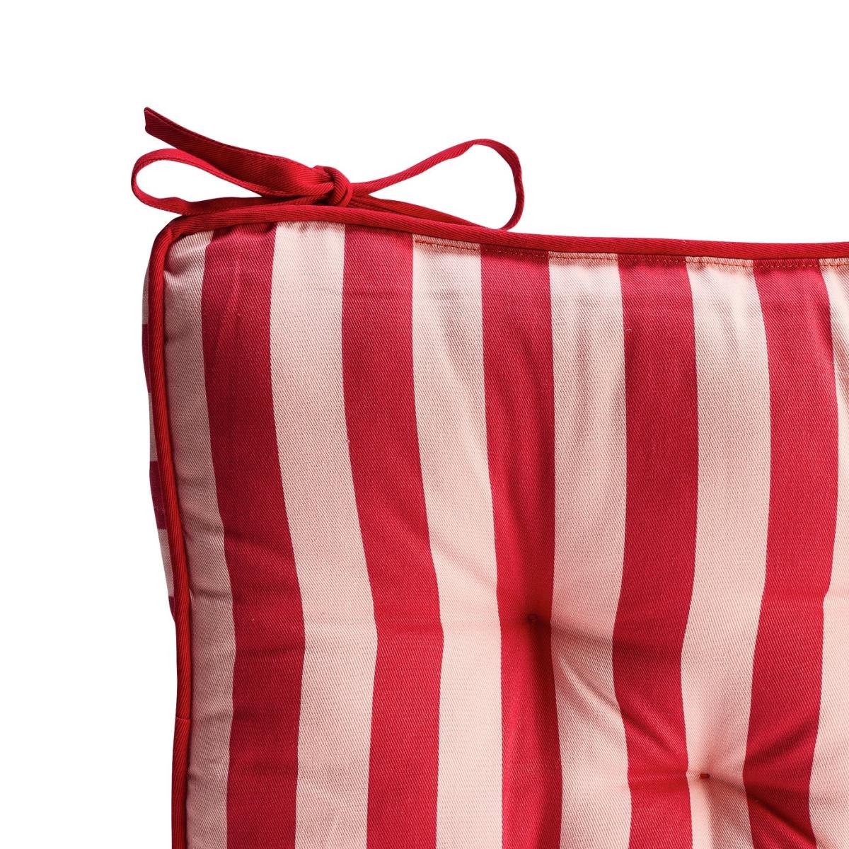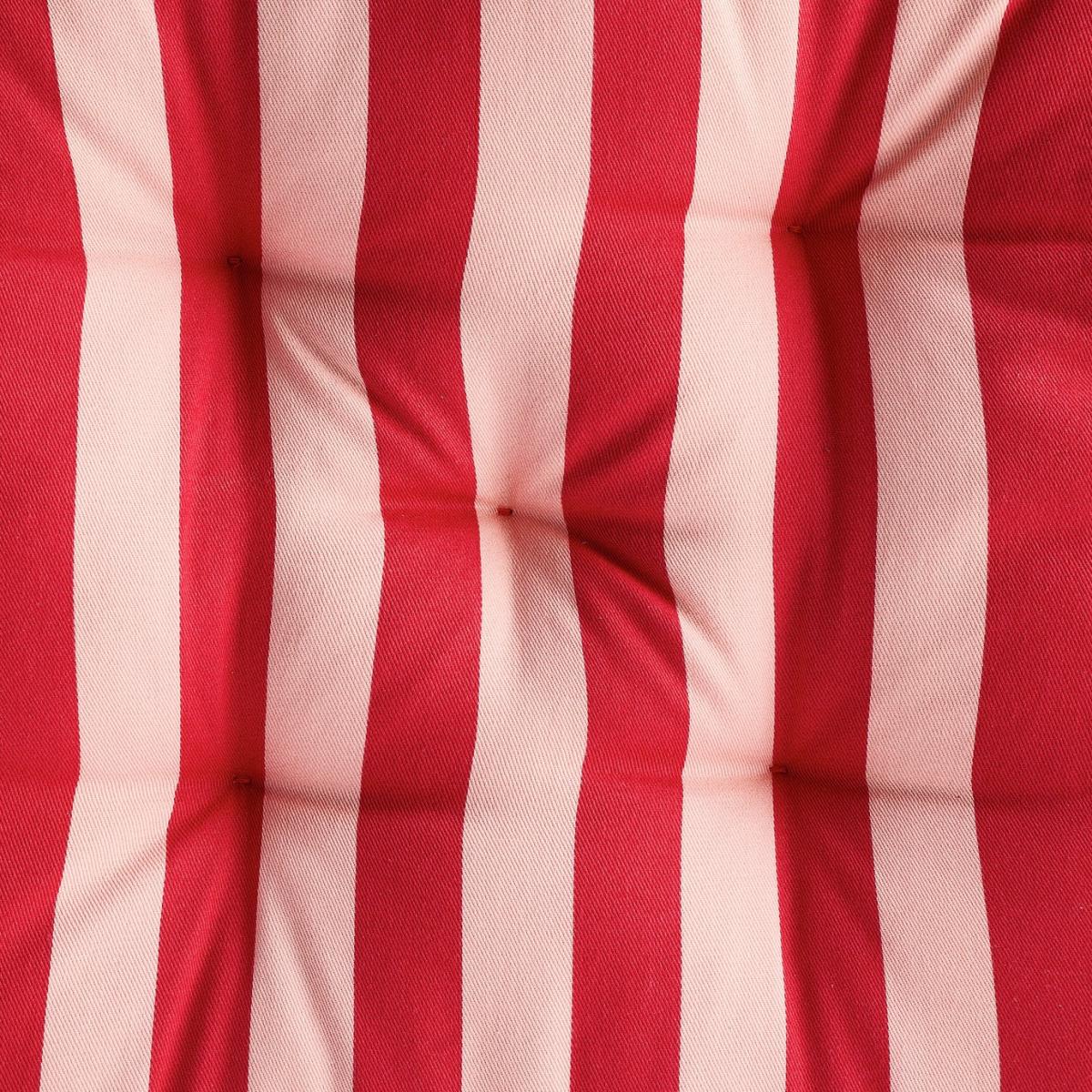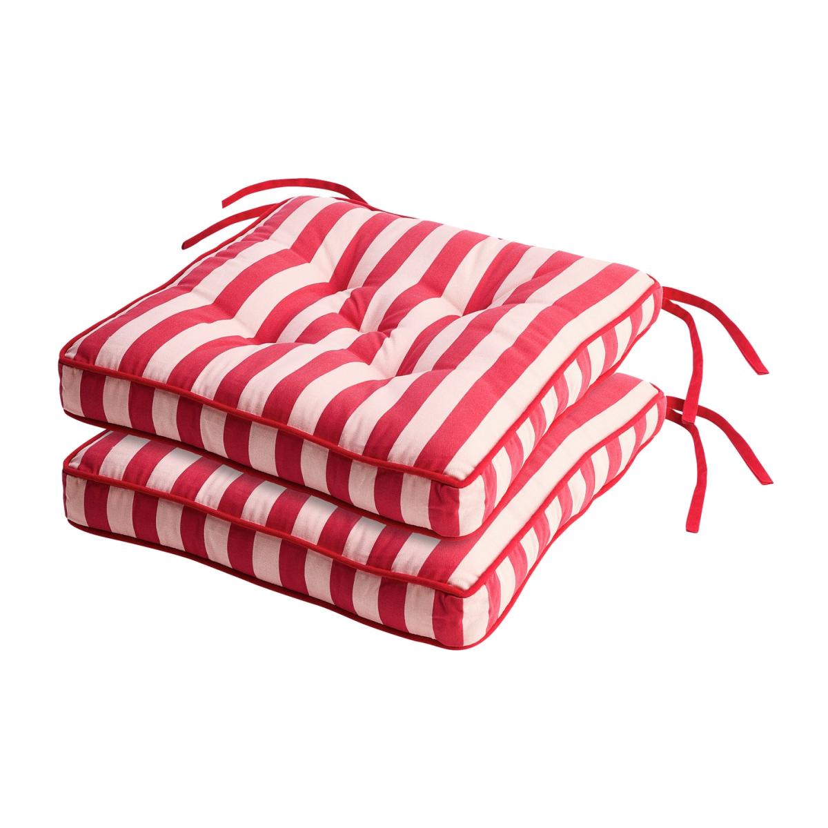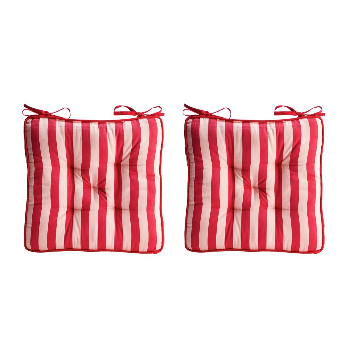 Stripe it right. Give your chairs a quick lift with this pair of plump, tie-on seat cushions. In bold red and white stripes, our tufted twosome brings a pop of pizzazz and cushioned comfort to everyday dining. Add a plain tablecloth or mix with patterned tableware for a playful look. Cotton cover. Recycled Polyester filling. Secured by ties. Size L40, W40cm. Wipe clean.