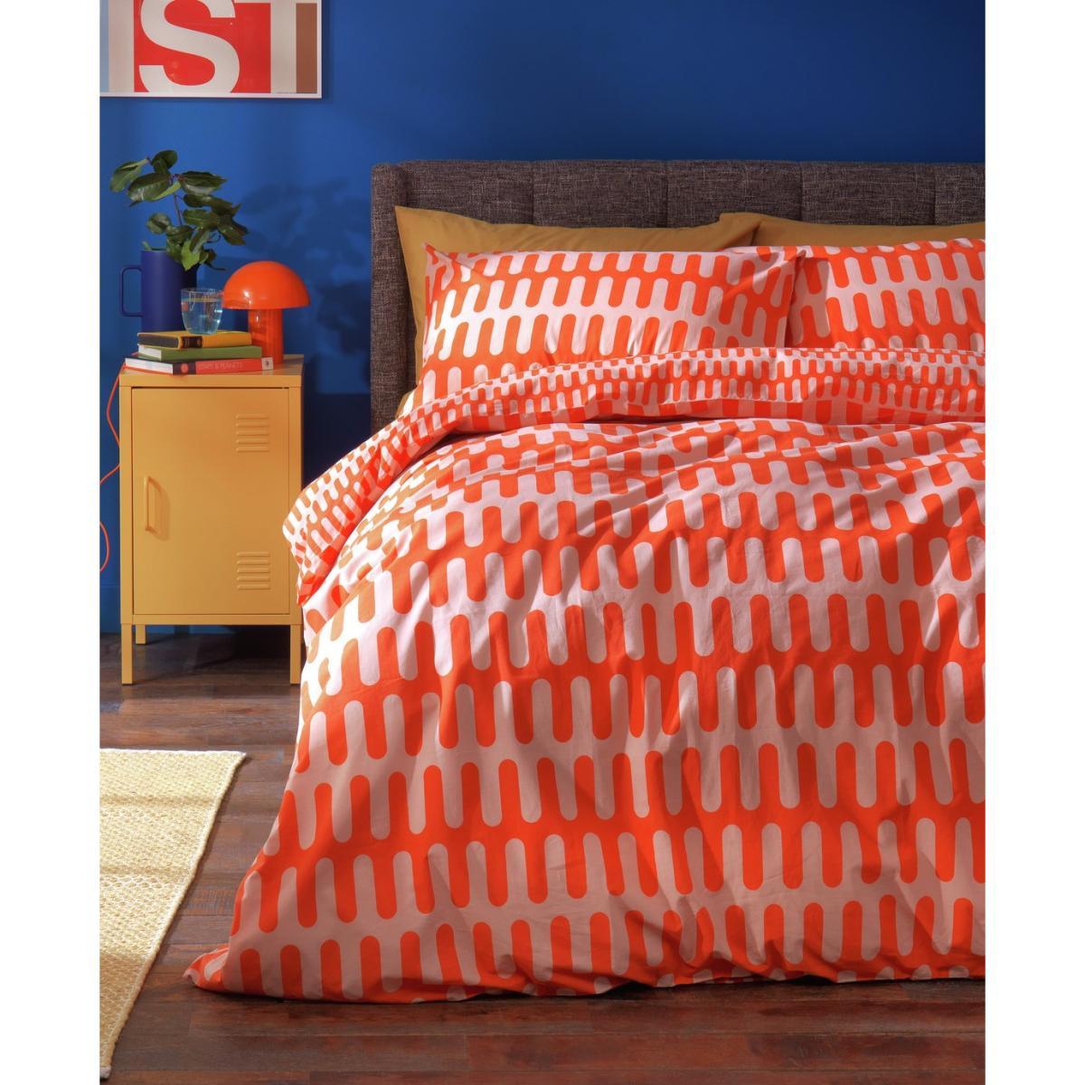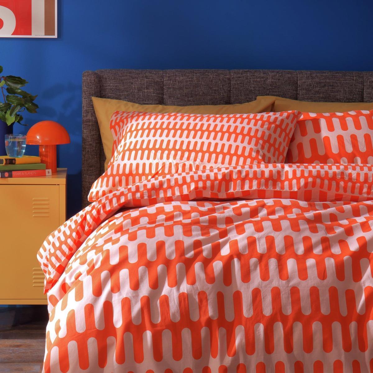 Bedroom looking a little tired? Bright and bold, the striking, orange geometric print bed set will really pep it up. Made in soft, light-to-the touch cotton percale, it's deliciously comfy and super practical. It's reversible too so you can flip between big and small print patterns.