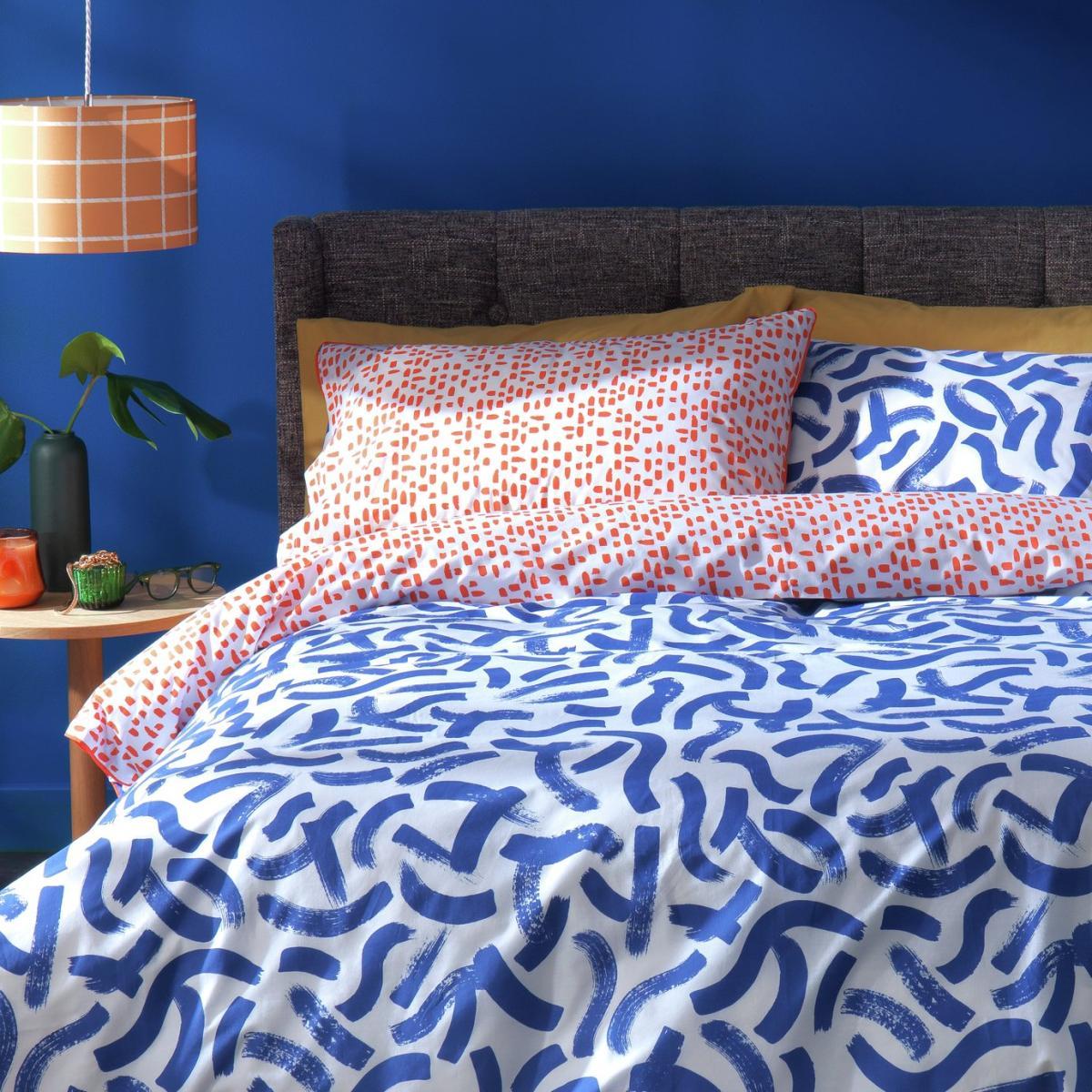 The art of sleep. This lively brush-mark pattern 'bed in a bag' set would look right at home on an easel. But what a way to liven up a bedroom! ? Made from a polycotton blend, this 180 thread count duvet set is soft and light to the touch. Perfect for a great night's sleep. Plus, with two sides to choose from, you can switch your decor whenever the mood takes you. Measuring width 200. X length 200cm and 2 Pillowcases 50X7. 5 cm. It's a stroke of genius.