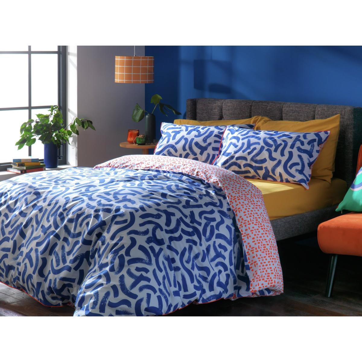 The art of sleep. This lively brush-mark pattern 'bed in a bag' set would look right at home on an easel. But what a way to liven up a bedroom! ? Made from a polycotton blend, this 180 thread count duvet set is soft and light to the touch. Perfect for a great night's sleep. Plus, with two sides to choose from, you can switch your decor whenever the mood takes you. Measuring width 260. X length 220cm and 2 Pillowcases 50X7. 5 cm. It's a stroke of genius.