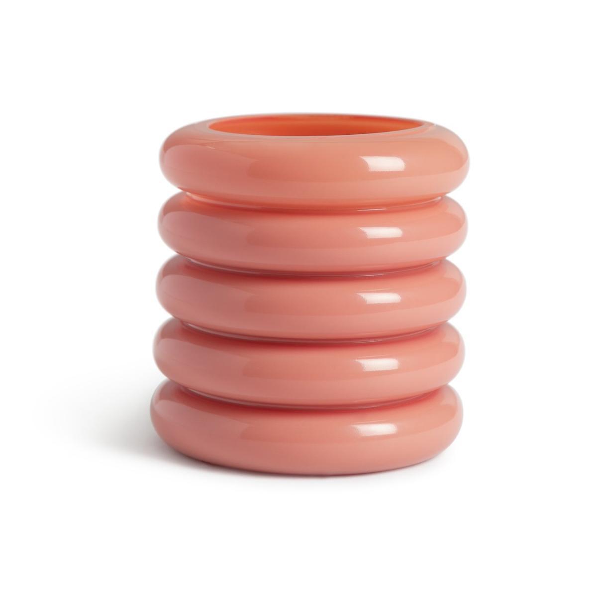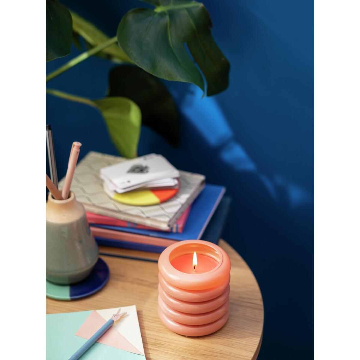 I love this little candle for its playful, sculptural form - the stacked, curvy rings give it a modern yet soft aesthetic. It works well in contemporary or minimal interiors, especially when paired with natural textures like wood or linen. The size makes it a great accent piece on a shelf, side table, or a bathroom tray, where it can add a subtle touch of colour without overwhelming the space. For styling, try placing it alongside other understated decor pieces or group it with taller candles for visual interest. Its unscented finish makes it versatile, so it’s perfect for creating ambiance without competing with fragrances in the room.