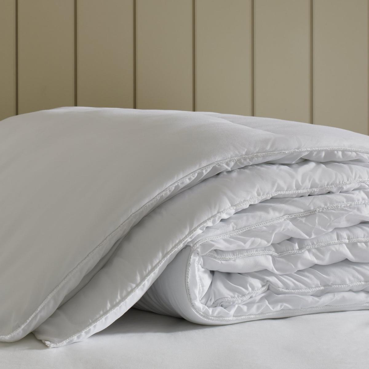 Sink into our Supersoft range for a heavenly night's sleep. Made in the UK, it combines comfort with practicality and is perfect for lazy days in bed. We've chosen a super soft cover to add a luxurious touch and a warm hollowfibre filling to trap air and keep you snug. With a 13.5 tog rating, this duvet is great for the colder months. Filled with 100% recycled polyester. While this duvet is machine washable, we recommend you take it to a professional laundry service for a more thorough clean. Double duvet. 13.5 tog duvet. Cover made from 100% polyester. Filling made from 100% recycled polyester. Size L200, W200cm. Machine washable. Suitable for tumble drying. Non-allergenic.