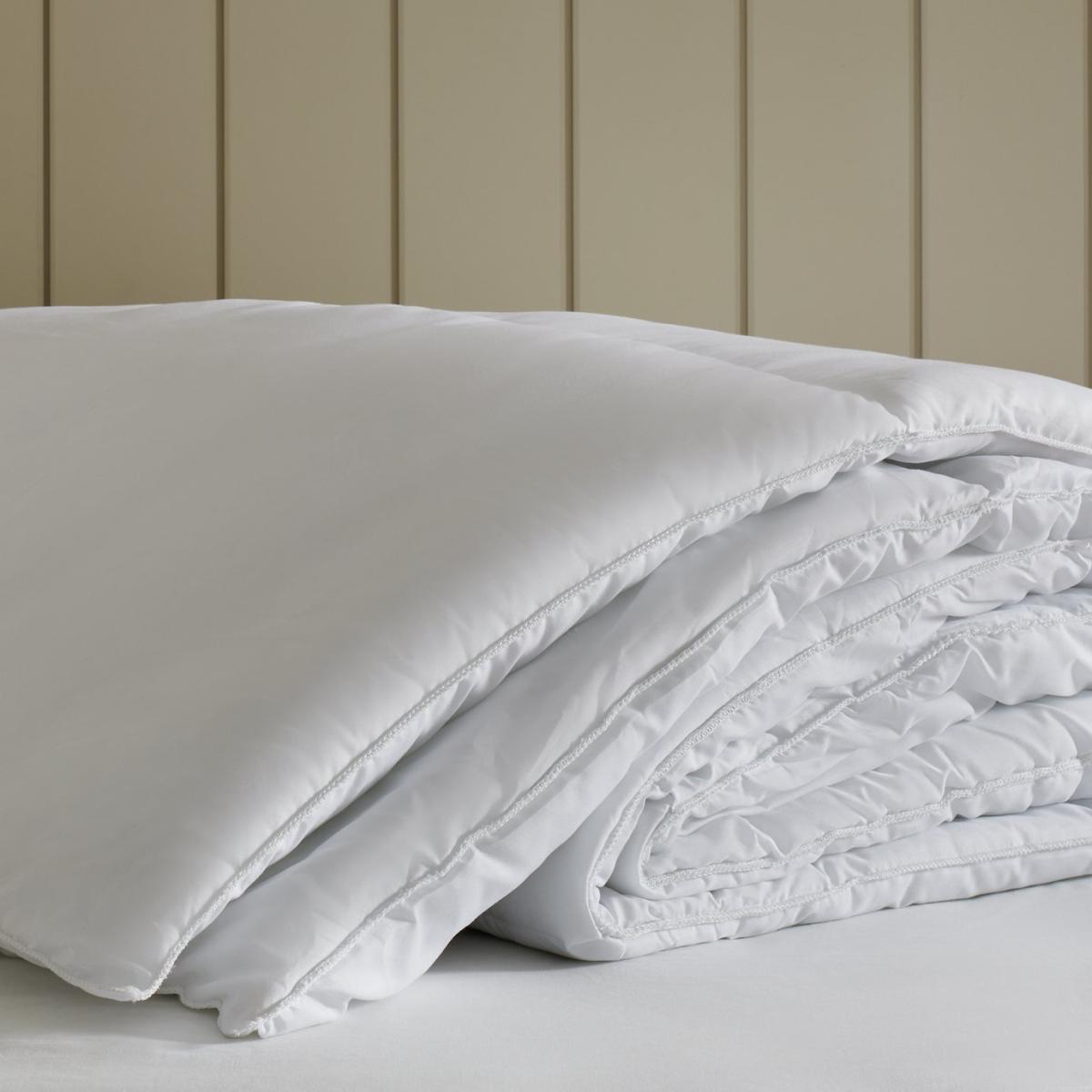 Sink into our Supersoft range for a heavenly night's sleep. Made in the UK, it combines comfort with practicality and is perfect for lazy days in bed. We've chosen a super soft cover to add a luxurious touch and a warm hollowfibre filling to trap air and keep you snug. With a 15 tog rating, this duvet is great for the colder months. Filled with 100% recycled polyester. While this duvet is machine washable, we recommend you take it to a professional laundry service for a more thorough clean. Super king duvet. 15 tog duvet. Cover made from 100% polyester. Filling made from 100% recycled polyester. Size L220, W260cm. Machine washable. Suitable for tumble drying. Non-allergenic.