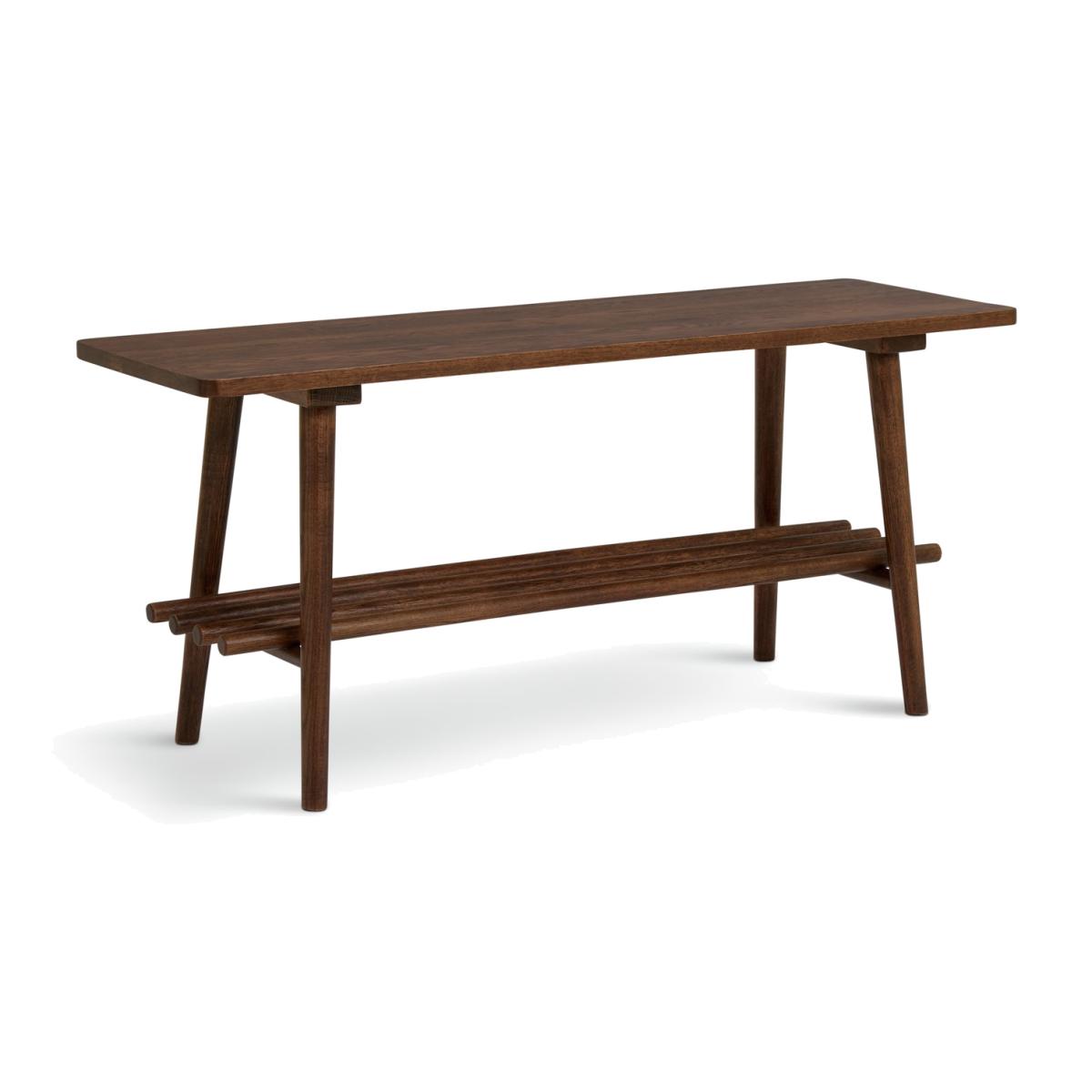 Neat for feet. This solid oak shoe bench is pure Scandi style. From its dark lacquered walnut finish, down to its practical slatted shelf. Gorgeous indeed. Sit on the bench while pulling on or slipping off your shoes. Or pop a plant on top for a warm, natural welcome. Made from oak with a laquered finish. Size H45, W100, D34cm. Weight 7.2kg. 1 fixed shelf. Freestanding. Self-assembly. If this product is over 60cm high it must be securely attached to the wall to prevent overturning. Package Dimensions: Package 1 dimensions: H10.5, W112, D43cm. Package 1 weight: 8.25kg. FSC certified meaning the materials used for this product are responsibly sourced. General Information: Manufacturer's 1 year guarantee.