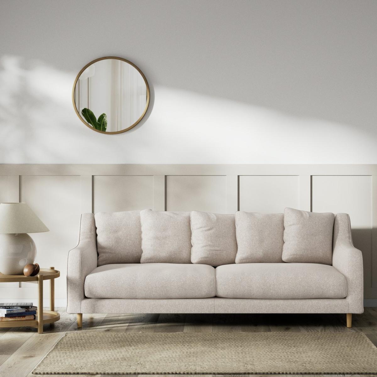 When it's made for you, you know you'll love it. Our comfortable Swift 3-seater sofa is a Habitat classic. The elegant, curved arms and slender legs are a nod to mid-century design. Upholstered in a contemporary Flat Weave, the Swift has a smooth but tonal look. With a soft and relaxing seat and a scatter cushion back to lean into. Swift is a striking sofa that's easy to live with. Offering relaxed comfort, the Swift's cushions use high density foam wrapped in a thick fibre quilted wrap to create the perfect balance of support, durability and recovery. Hand made to order in the UK, the Swift uses quality materials and traditional techniques for furniture that's unique to you. Available in a choice of sizes and fabrics including Aquaclean technology protection built into the yarn, which is easy to clean with just water. Part of the Swift collection. Material: Made from 100% polyester. Wooden feet - ash. Removable seats with fibre filling. Removable cushion(s) with fibre filling. Free fabric swatch available on this line. Dimensions: Size H87, W208, D89cm. Floor to seat height: 52cm. Depth of seat: 53cm. Height of seat back: 37.5cm. Width of seating area between arms: 183cm. Height of arm rest: 60cm. Weight: 74kg. Packaged dimensions: Package size H92, W213, D94cm. General information: We do more than deliver your product, we unpack, set it up and take away the packaging. Manufactured in the UK using components sourced globally. Professional clean only. Plump cushions regularly to maintain shape. Manufacturer's 15 year frame guarantee.