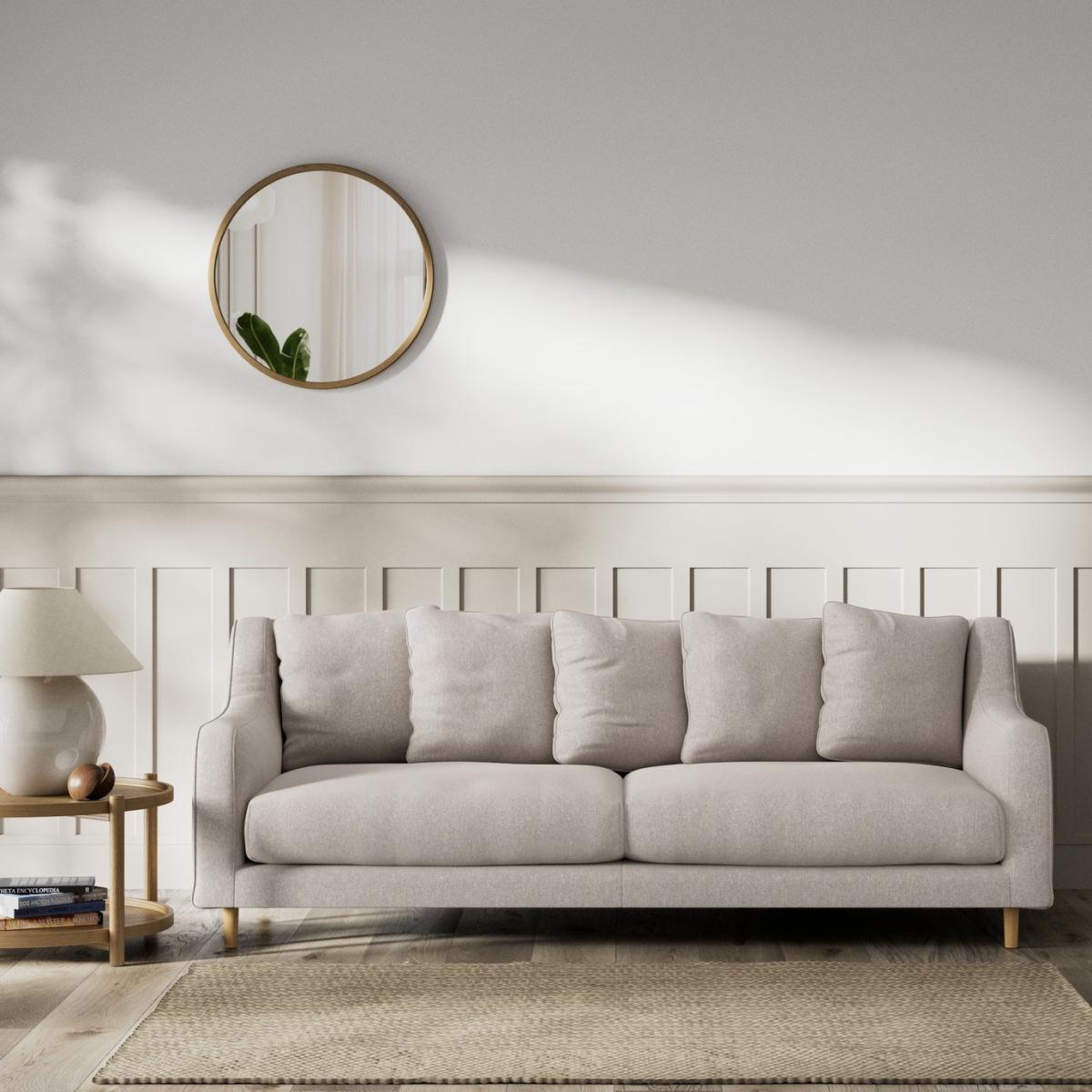 When it's made for you, you know you'll love it. Our comfortable Swift 3-seater sofa is a Habitat classic. The elegant, curved arms and slender legs are a nod to mid-century design. Upholstered in a contemporary Flat Weave, the Swift has a smooth but tonal look. With a soft and relaxing seat and a scatter cushion back to lean into. Swift is a striking sofa that's easy to live with. Offering relaxed comfort, the Swift's cushions use high density foam wrapped in a thick fibre quilted wrap to create the perfect balance of support, durability and recovery. Hand made to order in the UK, the Swift uses quality materials and traditional techniques for furniture that's unique to you. Available in a choice of sizes and fabrics including Aquaclean technology protection built into the yarn, which is easy to clean with just water. Part of the Swift collection. Material: Made from 100% polyester. Wooden feet - ash. Removable seats with fibre filling. Removable cushion(s) with fibre filling. Free fabric swatch available on this line. Dimensions: Size H87, W208, D89cm. Floor to seat height: 52cm. Depth of seat: 53cm. Height of seat back: 37.5cm. Width of seating area between arms: 183cm. Height of arm rest: 60cm. Weight: 74kg. Packaged dimensions: Package size H92, W213, D94cm. General information: FSC certified meaning the materials used for this product are responsibly sourced. We do more than deliver your product, we unpack, set it up and take away the packaging. Manufactured in the UK using components sourced globally. Professional clean only. Plump cushions regularly to maintain shape. Manufacturer's 15 year frame guarantee.
