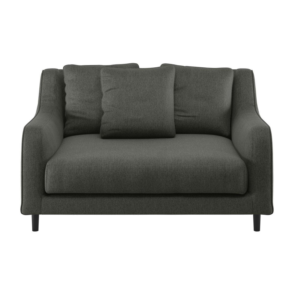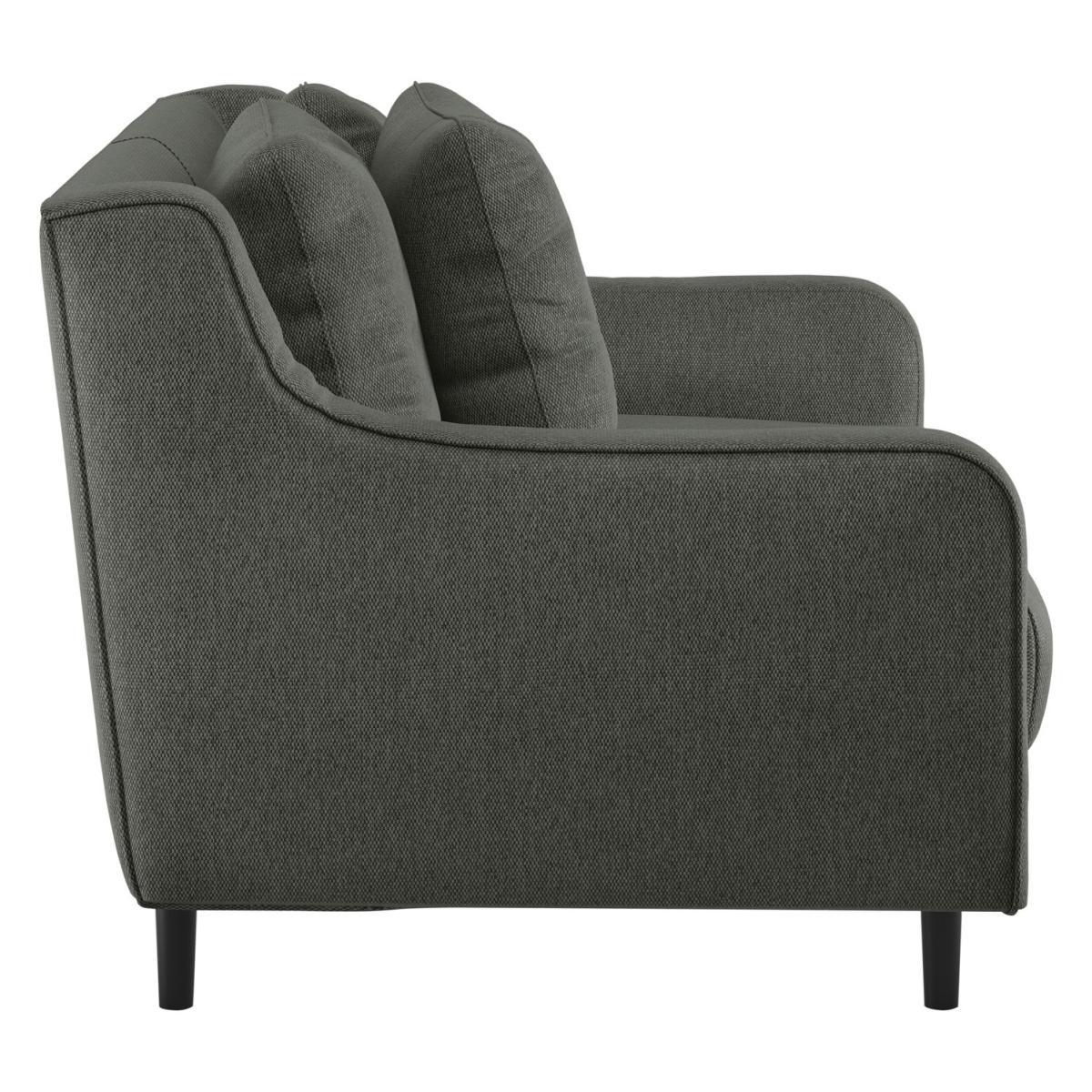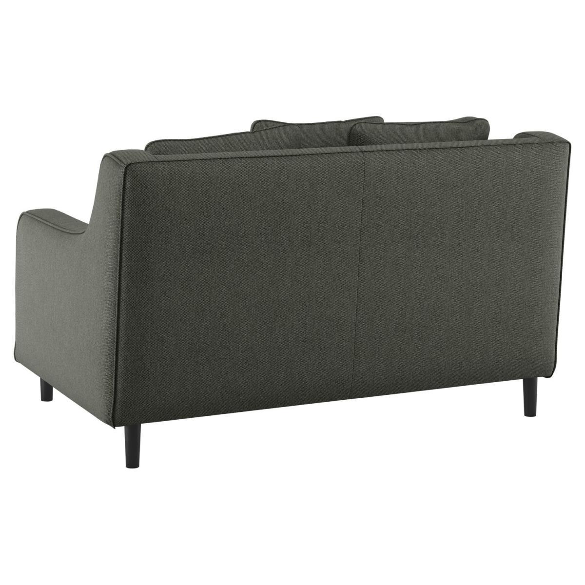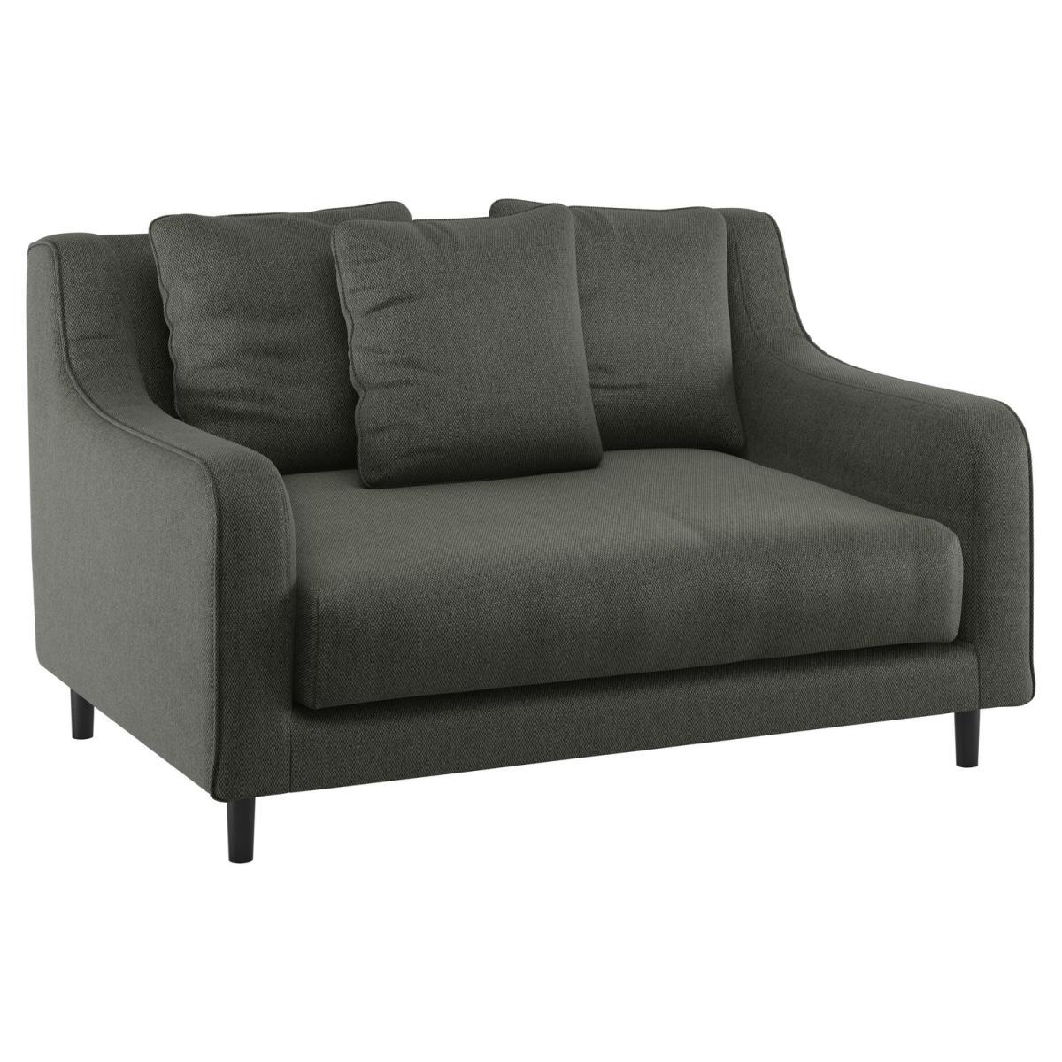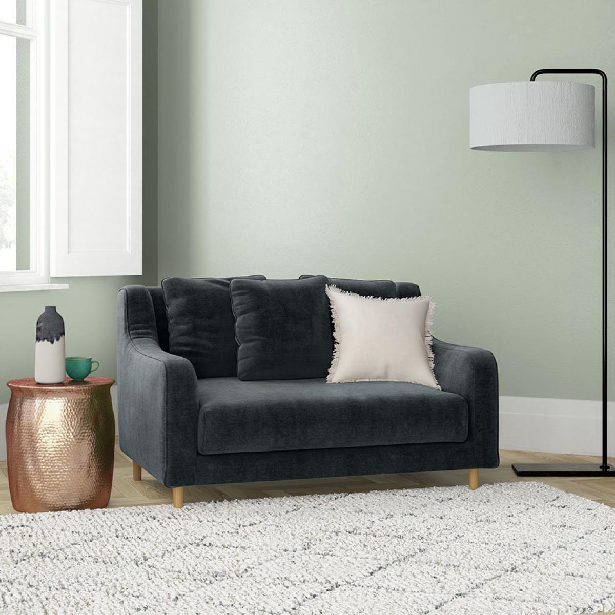 With elegant curved arms and deep seated cushions, the SWIFT loveseat fabric acor charcoal sofa gives a nod to a mid-century design. Created in the Habitat design studio, it offers the upmost comfort with plump, feather filled seat cushions and scattered feather filled back cushions. Finishing touches include dark oak legs and stitch details along the curved arms. Perfect for busy homes, this sofa is upholstered in a linen-look fabric with an easy-care finish to aid the removal of water-based stains.