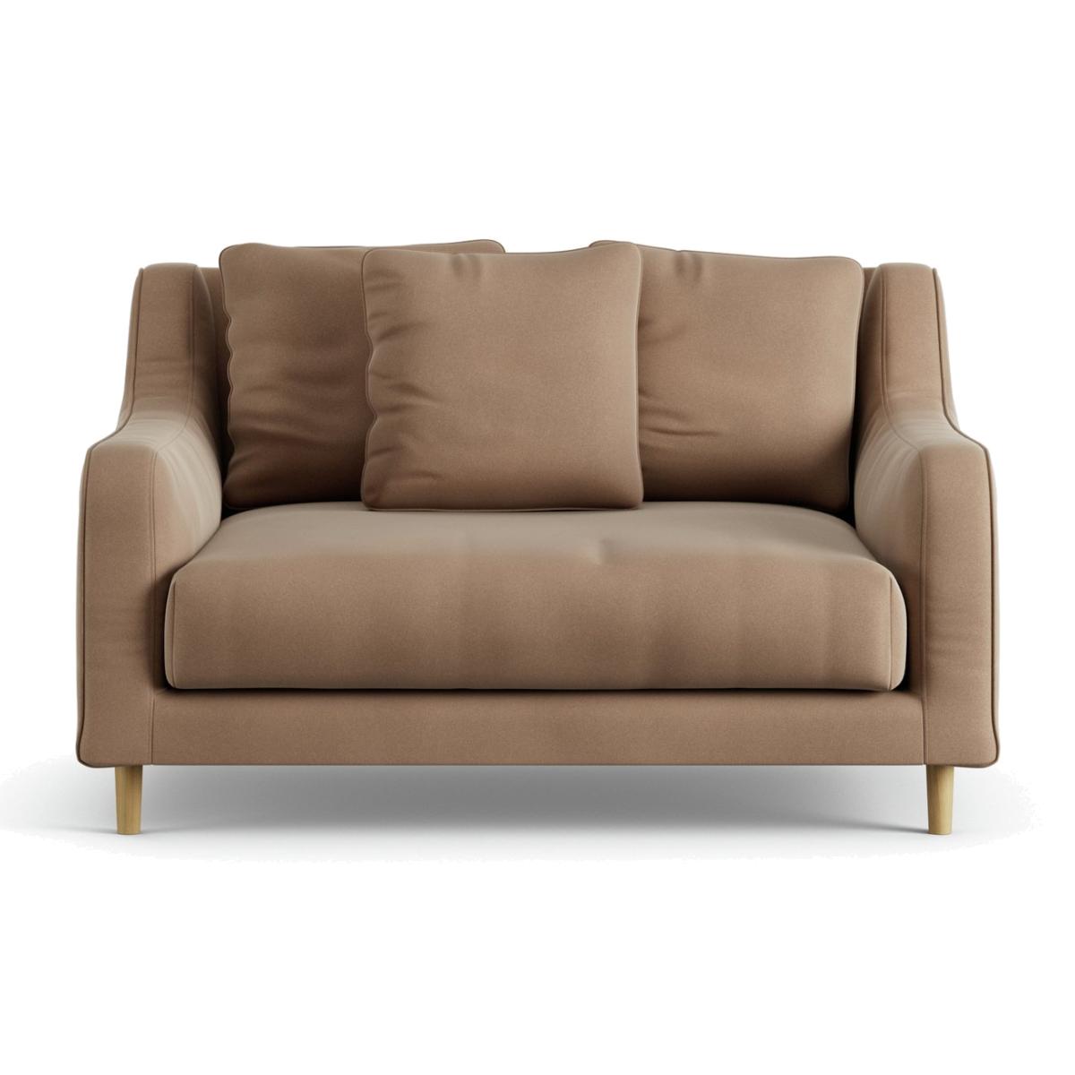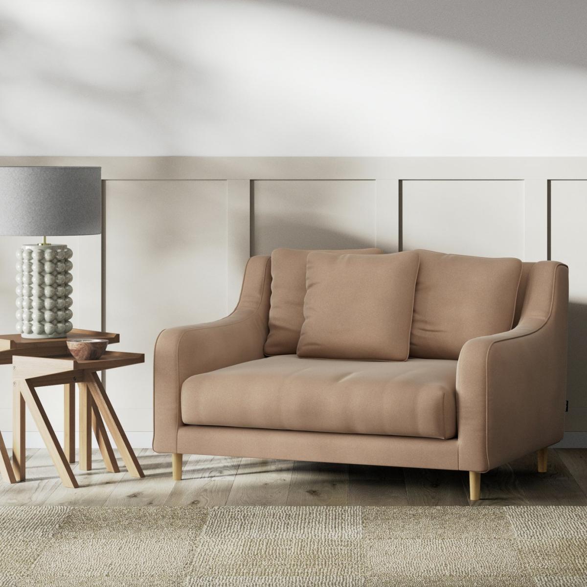 When it's made for you, you know you'll love it. Our comfortable Swift cuddle chair is a Habitat classic. The elegant, curved arms and slender legs are a nod to mid-century design. Upholstered in rich velvet, it takes on a luxe look. With a soft and relaxing seat and a scatter cushion back to lean into. Swift is a striking sofa that's easy to live with. Offering relaxed comfort, the Swift's cushions use high density foam wrapped in a thick fibre quilted wrap to create the perfect balance of support, durability and recovery. Handmade to order in the UK. The Swift uses quality materials and traditional techniques for furniture that's unique to you. Available in a choice of sizes and fabrics including Aquaclean technology protection built into the yarn, which is easy to clean with just water. Part of the Swift collection. Material: Made from 100% recycled polyester. Wooden feet. Removable seat with fibre filling. Removable cushion(s) with fibre filling. Dimensions: Size H87, W130, D89cm. Floor to seat height: 52cm. Depth of seat: 53cm. Height of seat back: 37.5cm. Width of seating area between arms: 105cm. Height of ARM rest: 60cm. Weight: 42.5kg. Packaged dimensions: Package size H92, W135, D94cm. General information: We do more than deliver your product, we unpack, set it up and take away the packaging. Manufactured in the UK using components sourced globally. Professional clean only. Plump cushions regularly to maintain shape. Manufacturer's 15 year frame guarantee.