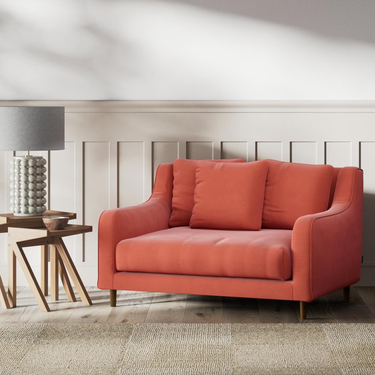 When it's made for you, you know you'll love it. Our comfortable Swift cuddle chair is a Habitat classic. The elegant, curved arms and slender legs are a nod to mid-century design. Upholstered in a velvety sheen chenille, the Swift takes on a rich, soft, textured look. With a soft and relaxing seat and a scatter cushion back to lean into. Swift is a striking sofa that's easy to live with. Offering relaxed comfort, the Swifts cushions use high density foam wrapped in a thick fibre quilted wrap to create the perfect balance of support, durability and recovery. Hand made to order in the UK, the Swift uses quality materials and traditional techniques for furniture thats unique to you. Available in a choice of sizes and fabrics including Aquaclean technology protection built into the yarn, which is easy to clean with just water. Part of the Swift collection. Material: Made from 100% polyester. Wooden feet. Removable seat with fibre filling. Removable cushion(s) with fibre filling. Free fabric swatch available on this line. Dimensions: Size H87, W130, D89cm. Floor to seat height: 52cm. Depth of seat: 53cm. Height of seat back: 37.5cm. Width of seating area between arms: 105cm. Height of arm rest: 60cm. Weight: 42.5kg. Packaged dimensions: Package size H92, W135, D94cm. General information: FSC certified meaning the materials used for this product are responsibly sourced. We do more than deliver your product, we unpack, set it up and take away the packaging. Manufactured in the UK using components sourced globally. Professional clean only. Plump cushions regularly to maintain shape. Manufacturer's 15 year frame guarantee.