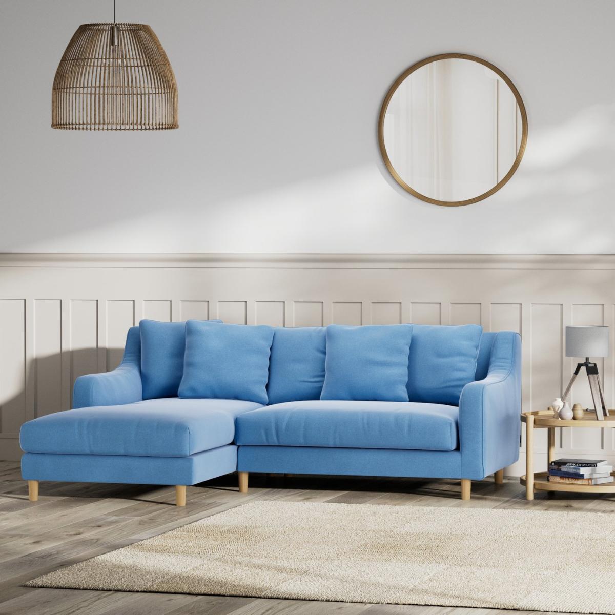 When it's made for you, you know you'll love it. Our comfortable Swift 3-seater left hand chaise is a Habitat classic. The elegant, curved arms and slender legs are a nod to mid-century design. Upholstered in a rich velvet, the Swift takes on a luxe look. With a soft and relaxing seat and a scatter cushion back to lean into. Swift is a striking sofa that's easy to live with. Offering relaxed comfort, the Swift's cushions use high density foam wrapped in a thick fibre quilted wrap to create the perfect balance of support, durability and recovery. Hand made to order in the UK, the Swift uses quality materials and traditional techniques for furniture that's unique to you. Available in a choice of sizes and fabrics including Aquaclean technology protection built into the yarn, which is easy to clean with just water. Part of the Swift collection. Left hand corner. Material: Made from 100% recycled polyester. Wooden feet. Removable seats with fibre filling. Removable cushion(s) with fibre filling. Free fabric swatch available on this line. Dimensions: Size H87, longer width 214,. Floor to seat height: 52cm. Depth of seat: 53cm. Height of seat back: 37.5cm. Longer seating area width between arms: 187cm. Height of arm rest: 60cm. Packaged dimensions: Package size H92, W126, D94cm. Second package size H92, W98, D94cm. General information: FSC certified meaning the materials used for this product are responsibly sourced. We do more than deliver your product, we unpack, set it up and take away the packaging. Manufactured in the UK using components sourced globally. Professional clean only. Plump cushions regularly to maintain shape. Manufacturer's 15 year frame guarantee.