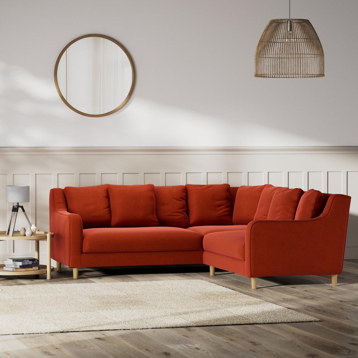 When it's made for you, you know you'll love it. Our comfortable Swift 3-seater corner sofa is a Habitat classic. The elegant, curved arms and slender legs are a nod to mid-century design. Upholstered in a rich velvet, the Swift takes on a luxe look. With a soft and relaxing seat and a scatter cushion back to lean into. Swift is a striking sofa that's easy to live with. Offering relaxed comfort, the Swift's cushions use high density foam wrapped in a thick fibre quilted wrap to create the perfect balance of support, durability and recovery. Hand made to order in the UK, the Swift uses quality materials and traditional techniques for furniture that's unique to you. Available in a choice of sizes and fabrics including Aquaclean technology protection built into the yarn, which is easy to clean with just water. Part of the Swift collection. Reversible corner. Material: Made from 100% recycled polyester. Wooden feet. Removable seats with fibre filling. Removable cushion(s) with fibre filling. Free fabric swatch available on this line. Dimensions: Size H87, longer width 209, shorter width 209,. Floor to seat height: 52cm. Depth of seat: 53cm. Height of seat back: 37.5cm. Shorter seating area width between arms: 159cm. Longer seating area width between arms: 159cm. Height of arm rest: 60cm. Packaged dimensions: Package size H92, W126, D94cm. Second package size H92, W214, D94cm. General information: FSC certified meaning the materials used for this product are responsibly sourced. We do more than deliver your product, we unpack, set it up and take away the packaging. Manufactured in the UK using components sourced globally. Professional clean only. Plump cushions regularly to maintain shape. Manufacturer's 15 year frame guarantee.