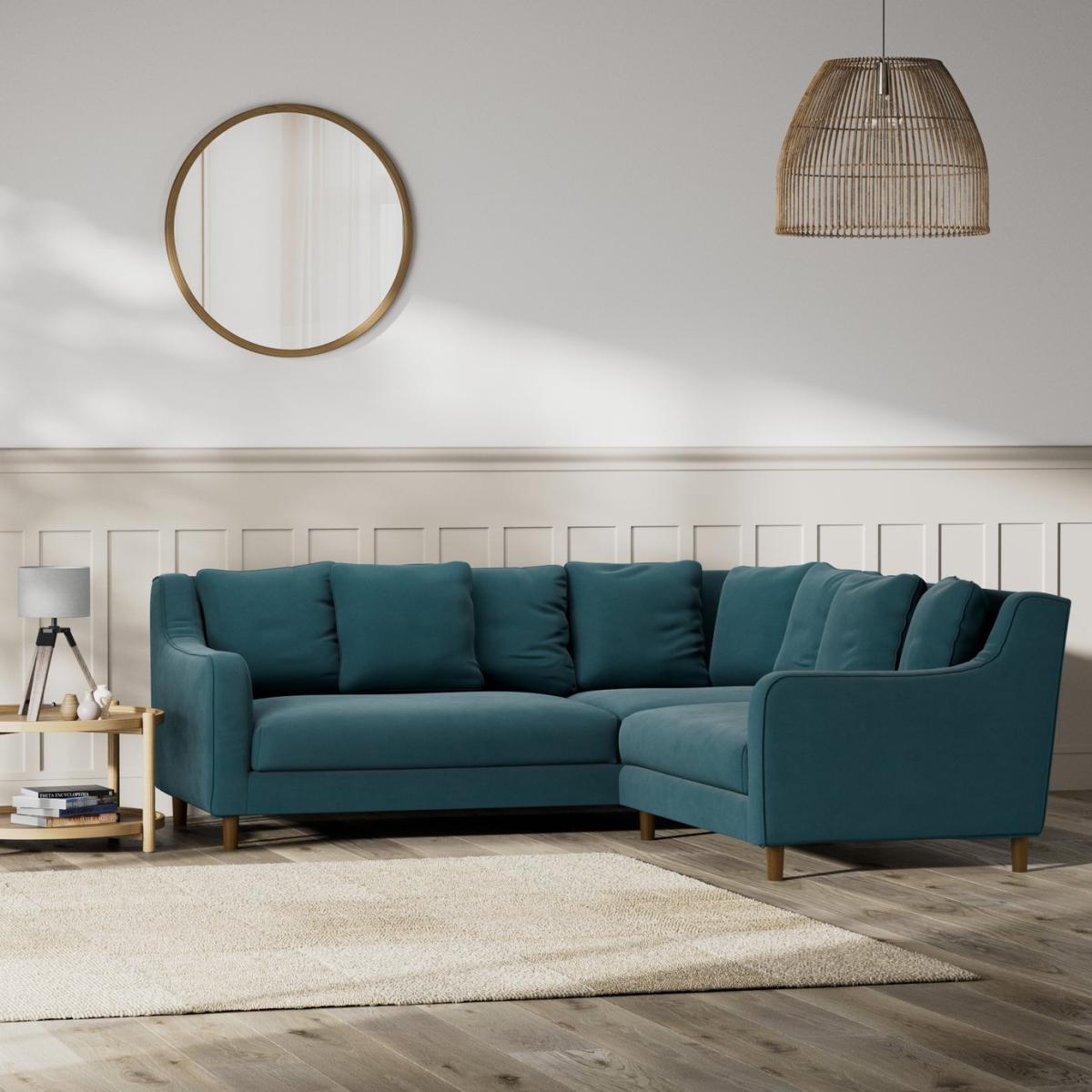 When it's made for you, you know you'll love it. Our comfortable Swift 3-seater corner sofa is a Habitat classic. The elegant, curved arms and slender legs are a nod to mid-century design. Upholstered in a velvety sheen chenille, the Swift takes on a rich, soft, textured look. With a soft and relaxing seat and a scatter cushion back to lean into. Swift is a striking sofa that's easy to live with. Offering relaxed comfort, the Swift's cushions use high density foam wrapped in a thick fibre quilted wrap to create the perfect balance of support, durability and recovery. Hand made to order in the UK, the Swift uses quality materials and traditional techniques for furniture that's unique to you. Available in a choice of sizes and fabrics including Aquaclean technology protection built into the yarn, which is easy to clean with just water. Part of the Swift collection. Reversible corner. Material: Made from 100% polyester. Wooden feet. Removable seats with fibre filling. Removable cushion(s) with fibre filling. Free fabric swatch available on this line. Dimensions: Size H87, longer width 209, shorter width 209,. Floor to seat height: 52cm. Depth of seat: 53cm. Height of seat back: 37.5cm. Shorter seating area width between arms: 159cm. Longer seating area width between arms: 159cm. Height of arm rest: 60cm. Packaged dimensions: Package size H92, W126, D94cm. Second package size H92, W214, D94cm. General information: FSC certified meaning the materials used for this product are responsibly sourced. We do more than deliver your product, we unpack, set it up and take away the packaging. Manufactured in the UK using components sourced globally. Professional clean only. Plump cushions regularly to maintain shape. Manufacturer's 15 year frame guarantee.