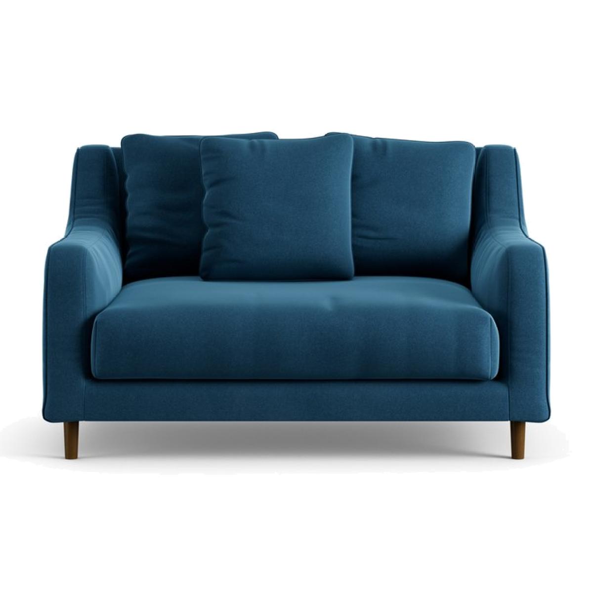 When it's made for you, you know you'll love it. Our comfortable Swift cuddle chair is a Habitat classic. The elegant, curved arms and slender legs are a nod to mid-century design. Upholstered in rich velvet, it takes on a luxe look. With a soft and relaxing seat and a scatter cushion back to lean into. Swift is a striking sofa that's easy to live with. Offering relaxed comfort, the Swifts cushions use high density foam wrapped in a thick fibre quilted wrap to create the perfect balance of support, durability and recovery. Hand made to order in the UK, the Swift uses quality materials and traditional techniques for furniture thats unique to you. Available in a choice of sizes and fabrics including Aquaclean technology protection built into the yarn, which is easy to clean with just water. Part of the Swift collection. Material: Made from 100% recycled polyester. Wooden feet. Removable seat with fibre filling. Removable cushion(s) with fibre filling. Free fabric swatch available on this line. Dimensions: Size H87, W130, D89cm. Floor to seat height: 52cm. Depth of seat: 53cm. Height of seat back: 37.5cm. Width of seating area between arms: 105cm. Height of arm rest: 60cm. Weight: 42.5kg. Packaged dimensions: Package size H92, W135, D94cm. General information: FSC certified meaning the materials used for this product are responsibly sourced. We do more than deliver your product, we unpack, set it up and take away the packaging. Manufactured in the UK using components sourced globally. Professional clean only. Plump cushions regularly to maintain shape. Manufacturer's 15 year frame guarantee.