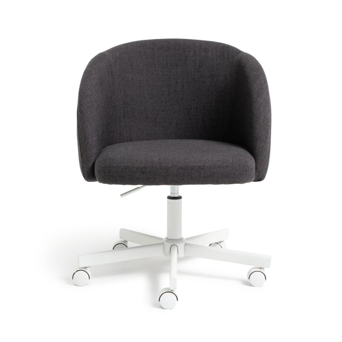 Upgrade your desk space with this superbly comfy tub chair. The dark grey charcoal seat is sophisticated and subtle - keeping things professional where it counts. The padded upholstery, adjustable height and shaped arms mean you can work in total comfort all day long. With a stylish contrasting white swivel base, this easy to manoeuvre desk chair will make your 9 to 5 a breeze.