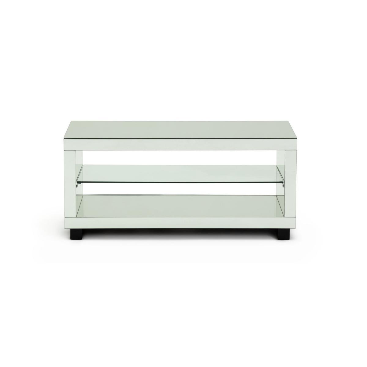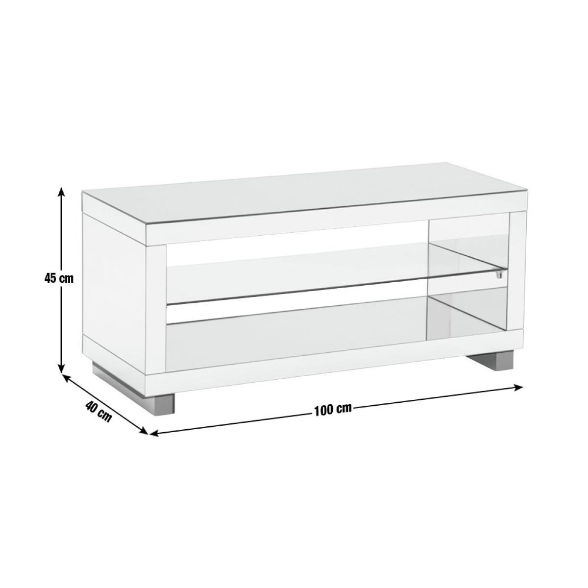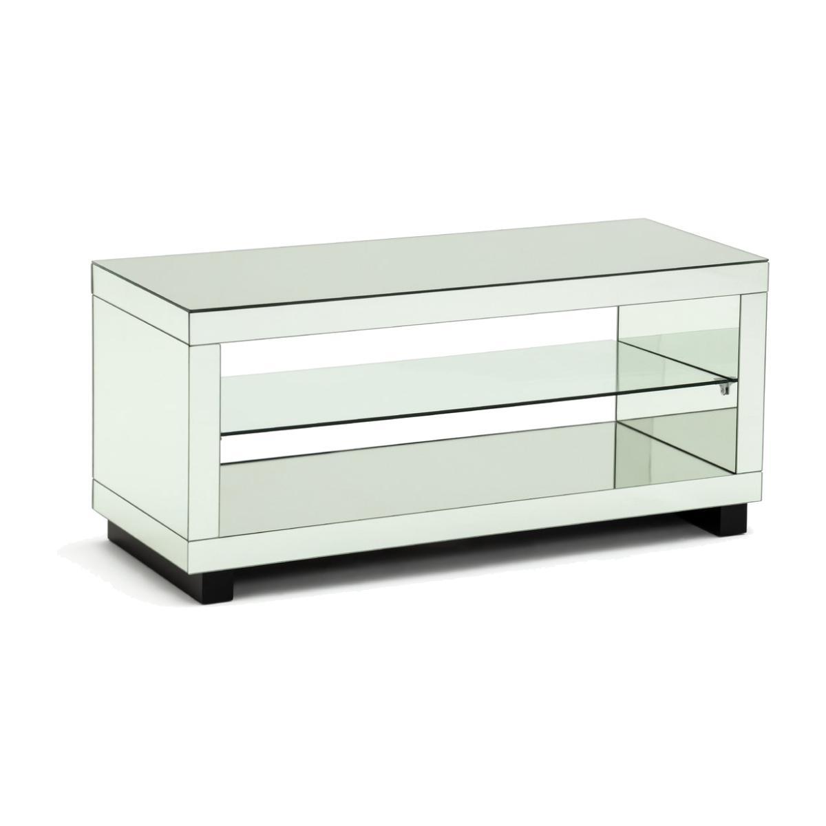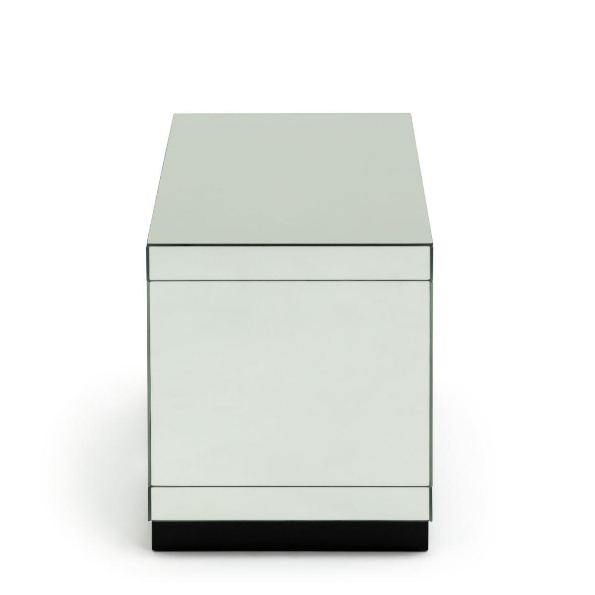Dare to dazzle. This elegant Sylvie TV Unit is a mirrored masterpiece. Part of a stylish collection of stunning Venetian furniture. Exquisitely handcrafted from reflective mirror in a nod to the Italian tradition. Pair with metallic lamps and soft shades to enhance a Luxe decor. The glass shelf keeps controls handy and consoles accessible. Settle down for a movie night and reflect in the glory of this show-stopping piece.