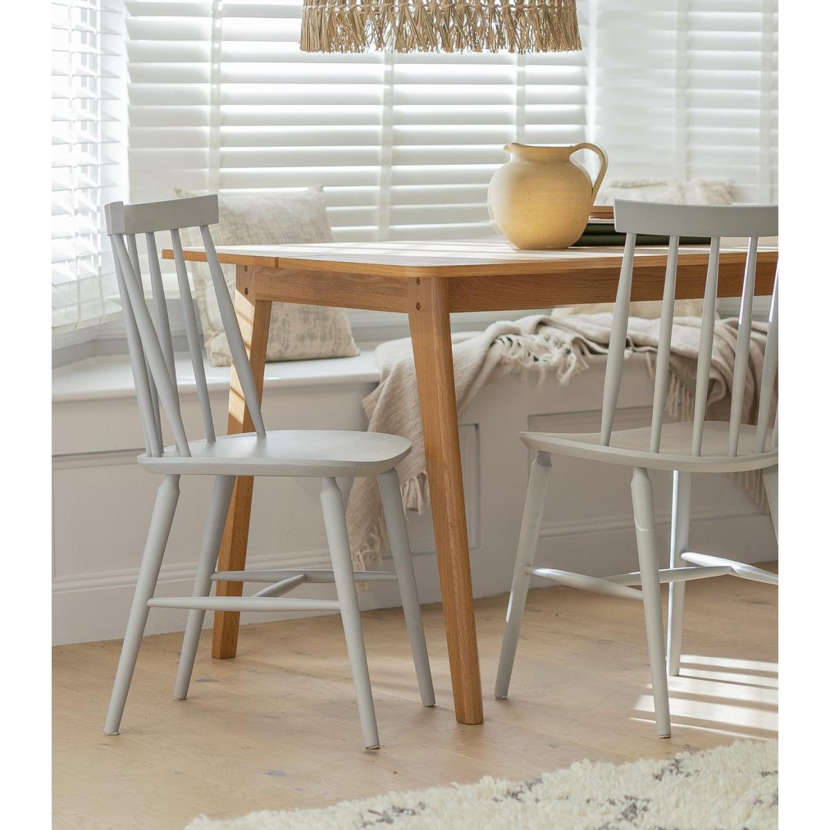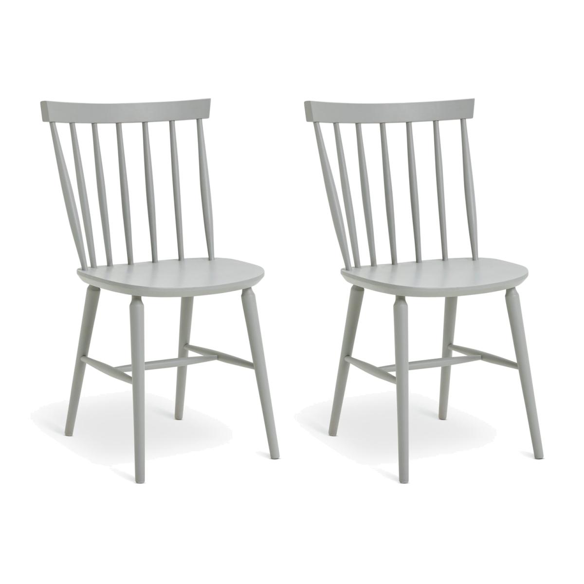 A contemporary update on a traditional design. This pair of striking spindle-back Talia dining chairs work well with a variety of table styles. In cool grey, they can also provide a strong visual contrast. Made from hard-wearing, lacquered solid beech wood with turned rods and a classic H-shaped support structure. Characterful country kitchen chairs. Inviting extra guests over? Buy a few pairs of chairs. And we've different colours too, making it easy for you to mix it up. Give your dining room a whole new look. We've a versatile collection of table designs for you to choose from. Part of the Talia collection. Chair: 2 chairs supplied. Size H85.5, W48.5, D50cm. Seat height 46.3cm. Solid wood frame with solid wood legs. Solid wood seat pad. Fully assembled -. Max user weight per chair 100kg. Individual chair weight 4kg. Dust or wipe with a damp cloth only. Package Dimensions: Chair package size: H97, W54.5, D71cm. General information: We are excited to be welcoming some of our favourite HOME products into the Habitat range. Your product may arrive in Habitat or HOME packaging. Manufacturer's 1 year guarantee.