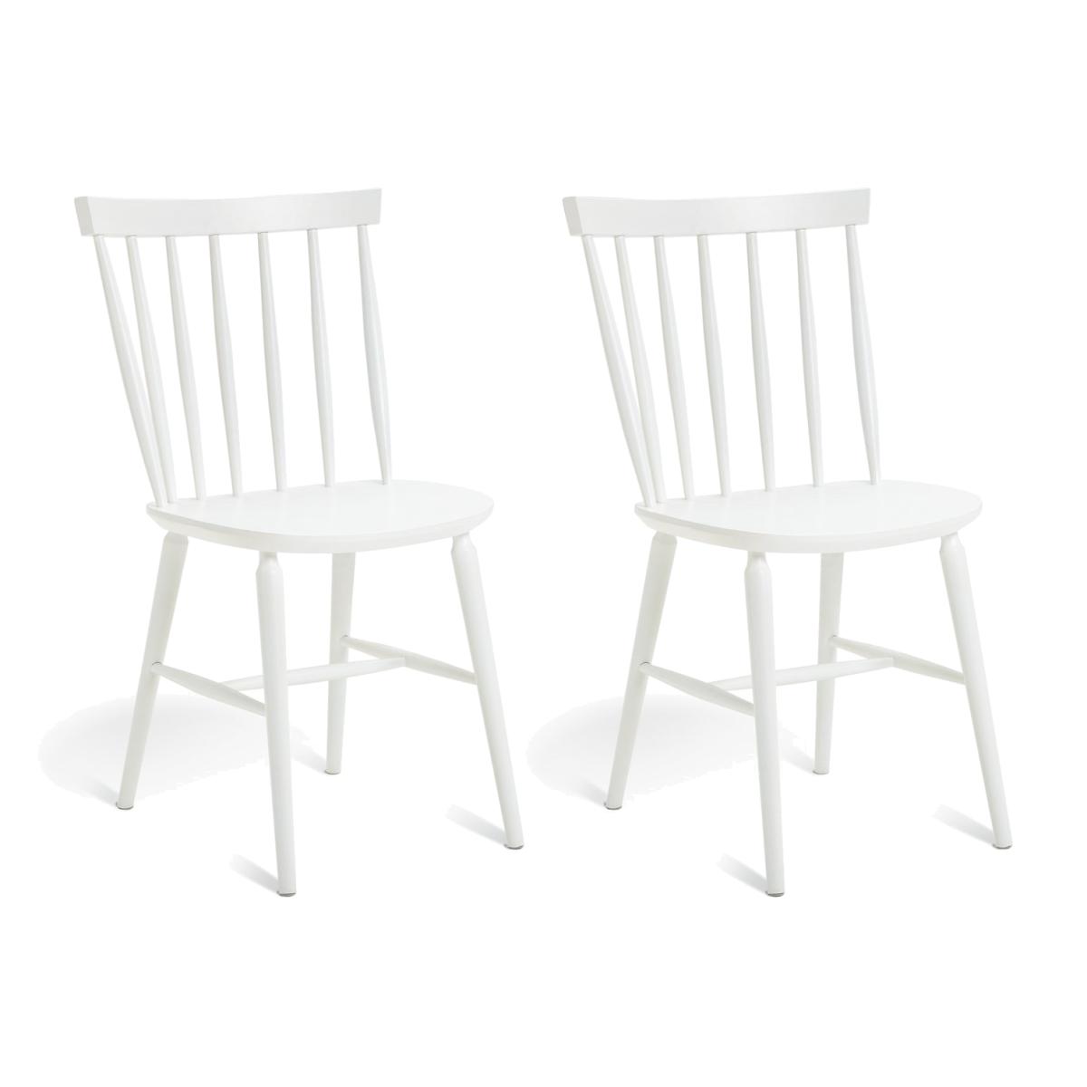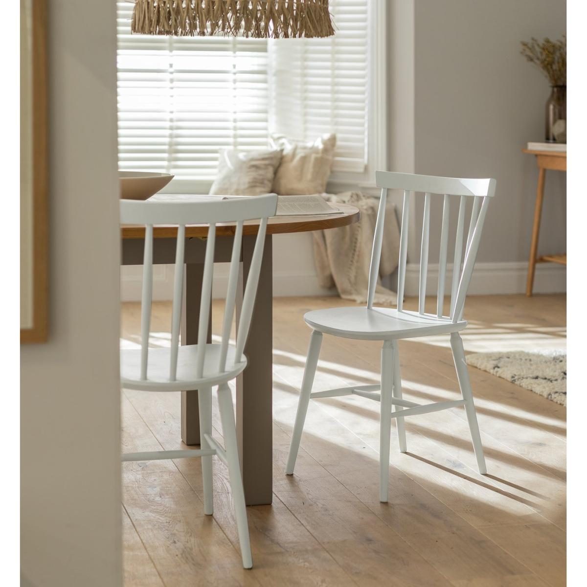 A contemporary update on a traditional design. This pair of striking spindle-back Talia dining chairs work well with a variety of table styles. In cool white, they can also provide a strong visual contrast. Made from hard-wearing, lacquered solid beech wood with turned rods and a classic H-shaped support structure. Characterful country kitchen chairs. Inviting extra guests over? Buy a few pairs of chairs. And we've different colours too, making it easy for you to mix it up. Give your dining room a whole new look. We've a versatile collection of table designs for you to choose from. Part of the Talia collection. Chair: 2 chairs supplied. Size H85.5, W48.5, D50cm. Seat height 46.3cm. Solid wood frame with solid wood legs. Solid wood seat pad. Fully assembled -. Max user weight per chair 100kg. Individual chair weight 4kg. Dust or wipe with a damp cloth only. Package Dimensions: Chair package size: H97, W54.5, D71cm. General information: We are excited to be welcoming some of our favourite HOME products into the Habitat range. Your product may arrive in Habitat or HOME packaging. Manufacturer's 1 year guarantee.