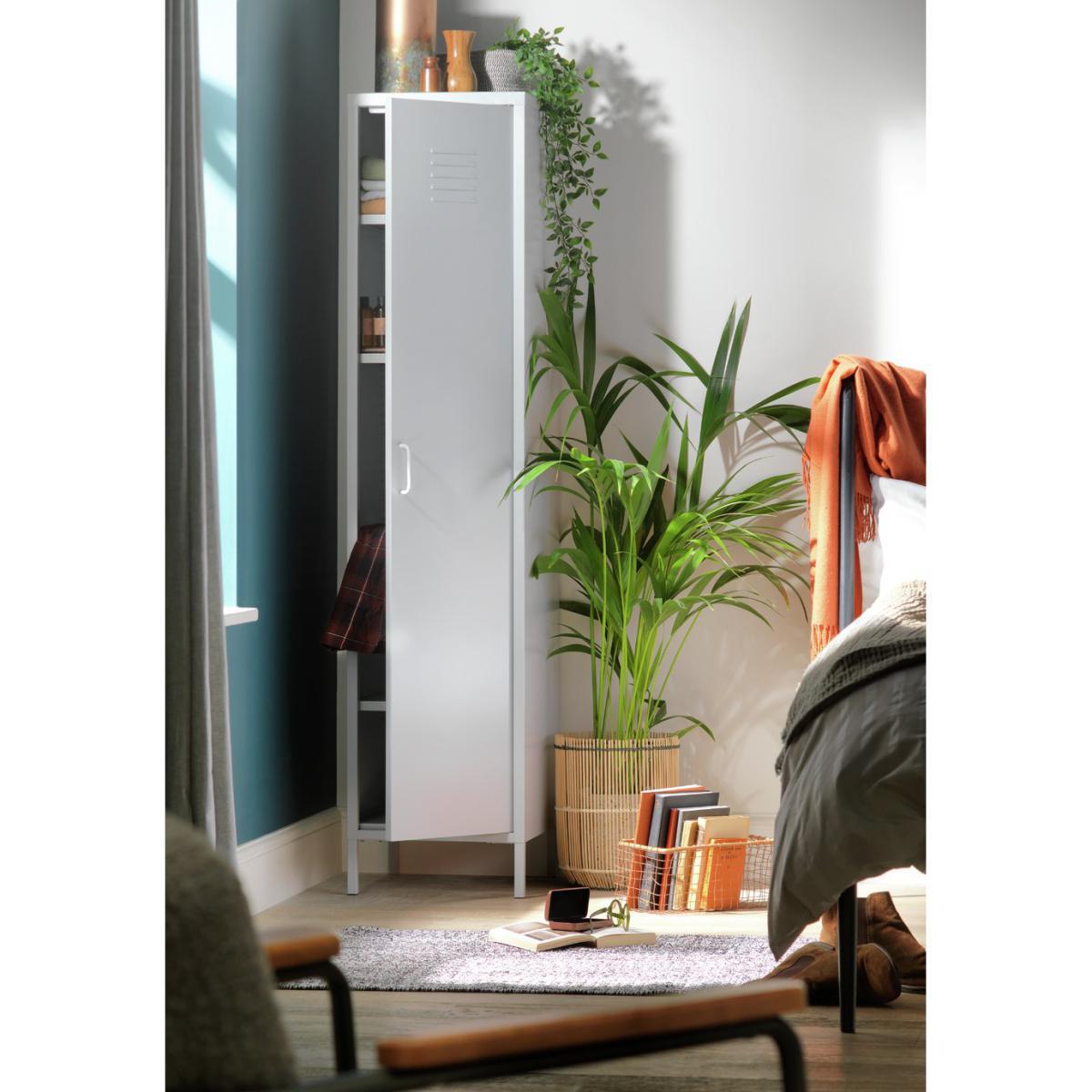 If you like your interiors industrial, this one's for you. Our steel locker is stylish and functional and channels a key design trend. The sort of thing that would look right at home in an artist's loft, it's light grey colour fits any design scheme and is a key colour this year. With its unified and seamless look, this locker represents minimalism at its best. The single door swings open to reveal 4 useful shelves.