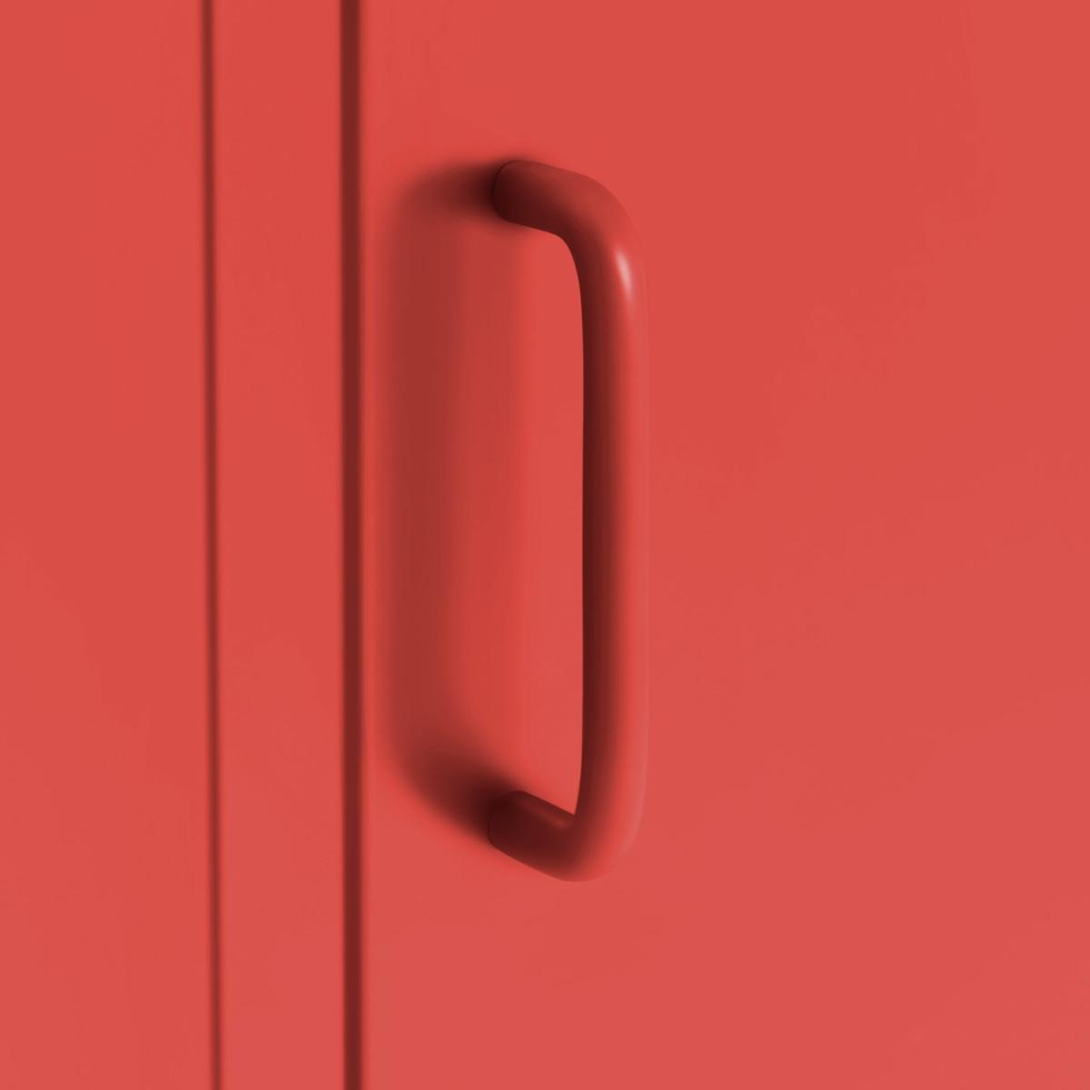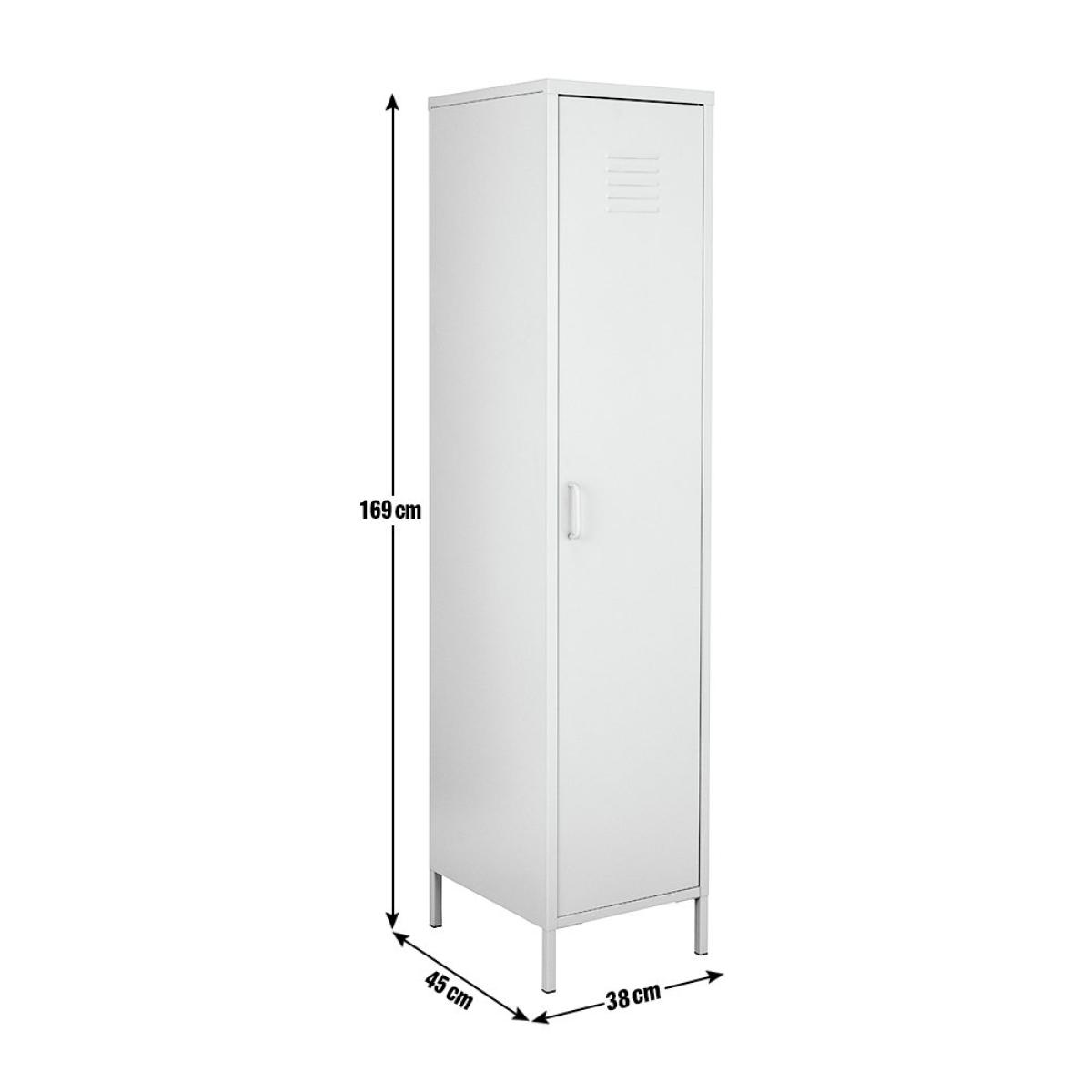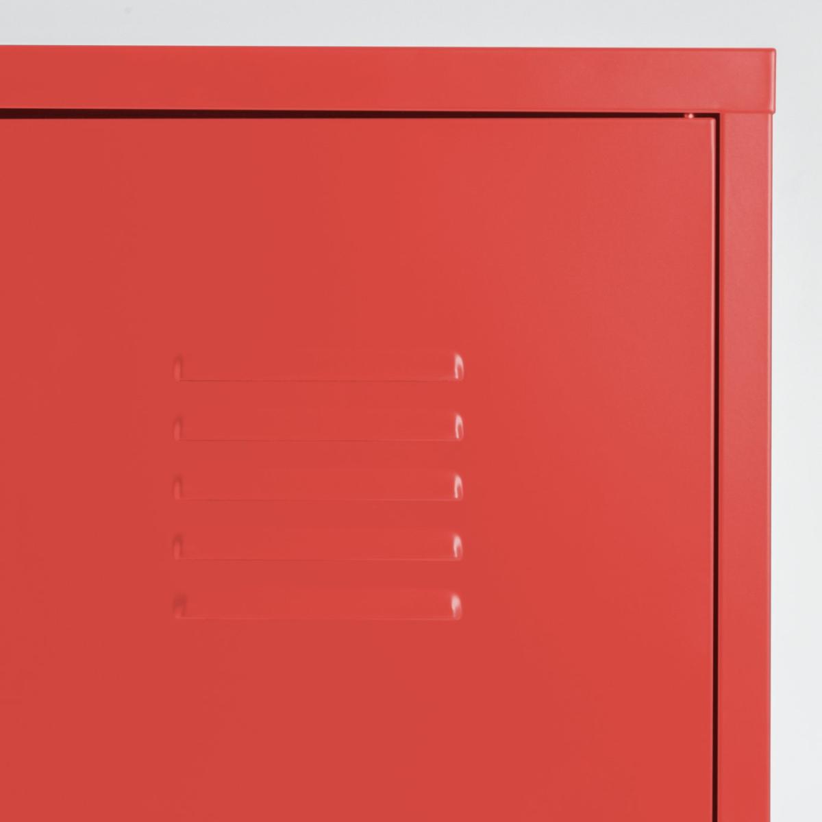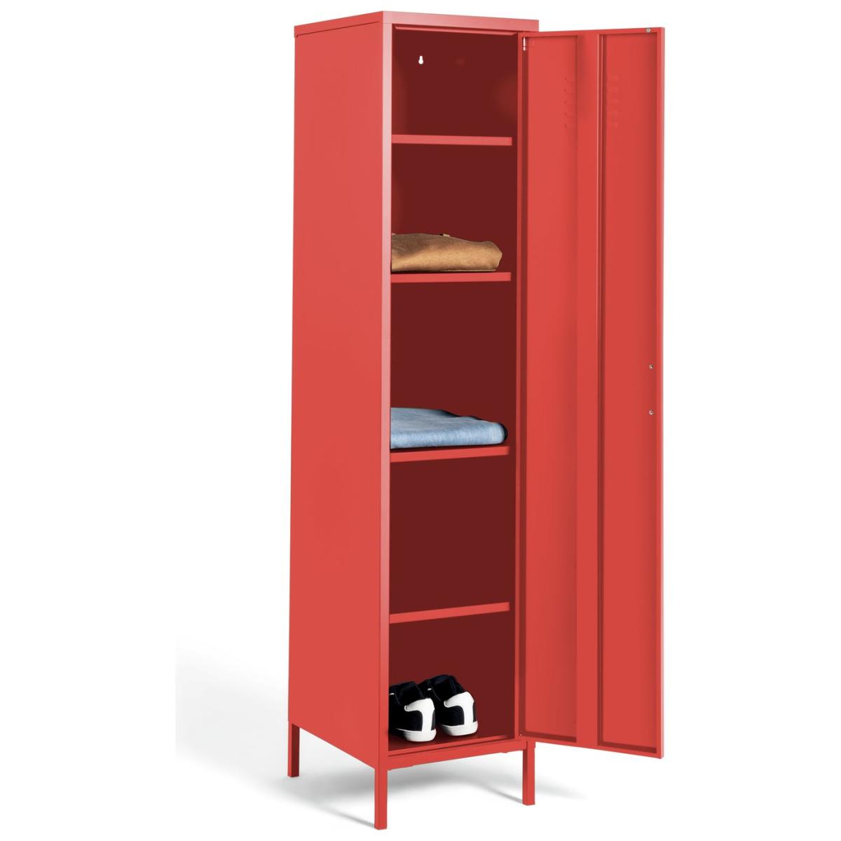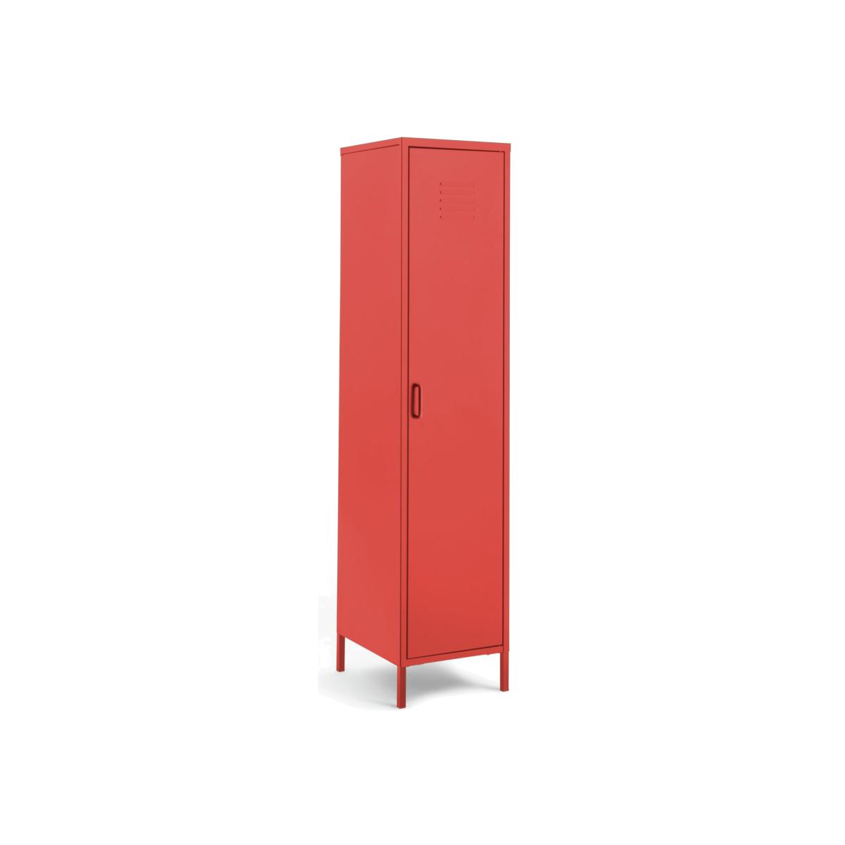 If you like your interiors industrial, this one's for you. Our steel locker is stylish and functional and channels a key design trend. The sort of thing that would look right at home in an artist's loft, it's red colour fits any design scheme and is a key colour this year. With its unified and seamless look, this locker represents minimalism at its best. The single door swings open to reveal 4 useful shelves. Part of the Stevie collection. Made from steel. and 4 adjustable shelves. Self-assembly - 2 people recommended. If this product is over 60cm high it must be securely attached to the wall to prevent overturning (fixings not included). Dimensions: Size: H169, W38, D45cm. Weight: 18kg. Maximum load weight 40kg. General information: Manufacturer's 1 year guarantee.