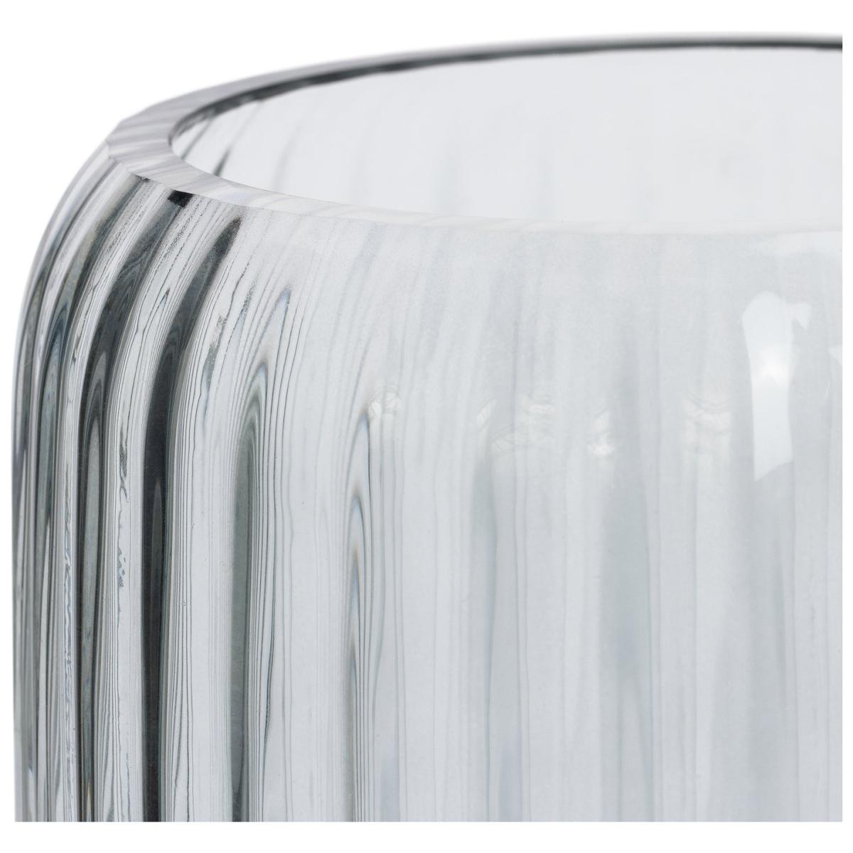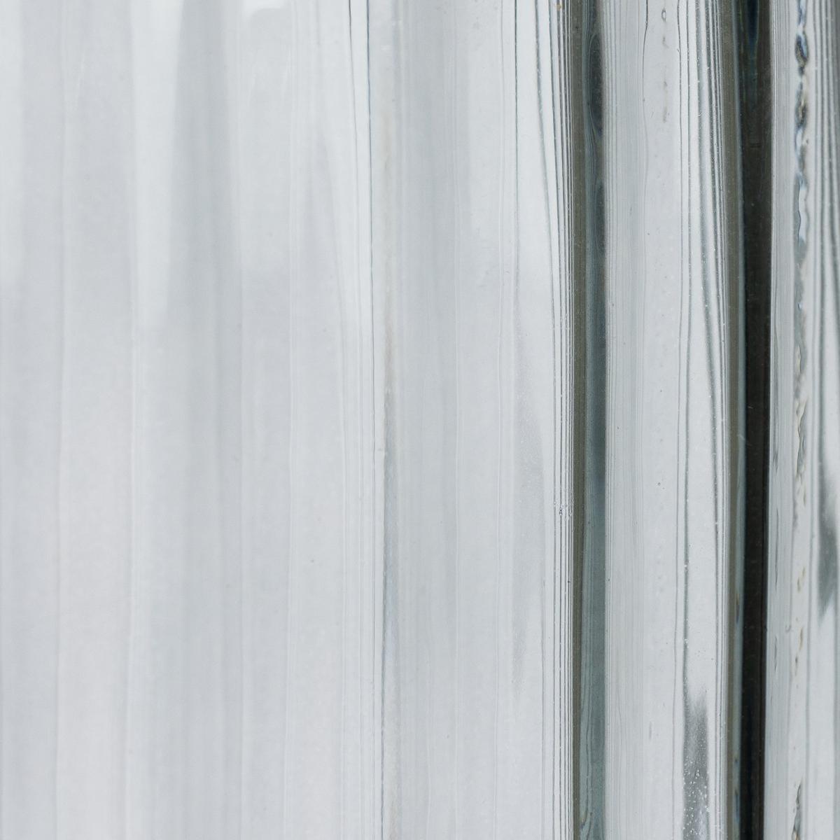 This tall, ribbed vase is carefully hand blown by skilled workers, so each one is unique. Beautiful filled with long stemmed flowers, sprigs of twisted willow or feathery pampas grass. Fresh or faux. Size H35, W15, D15cm.