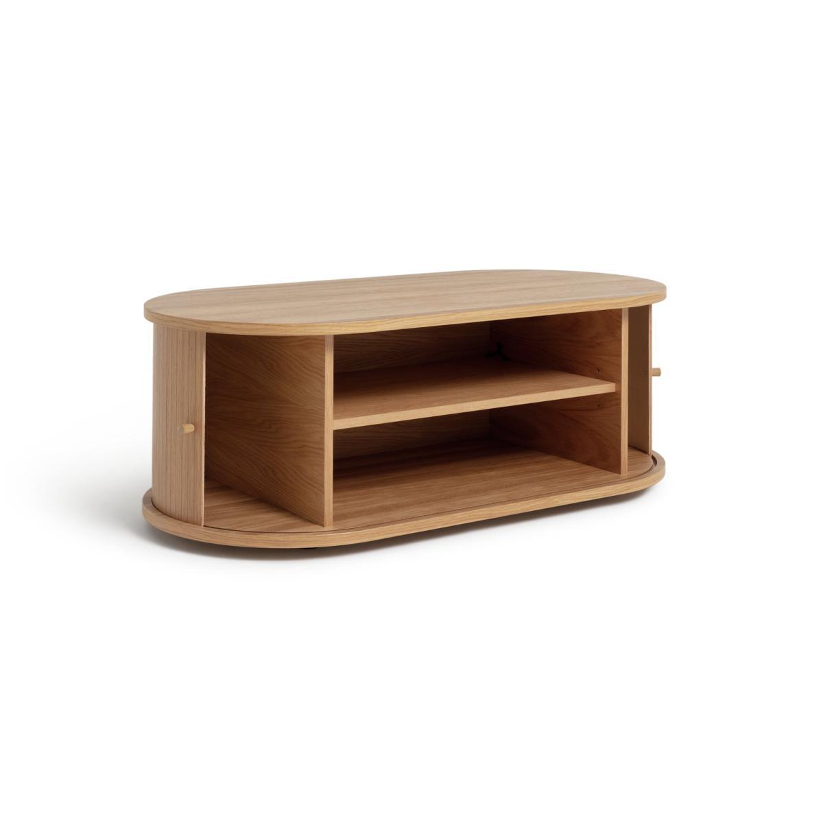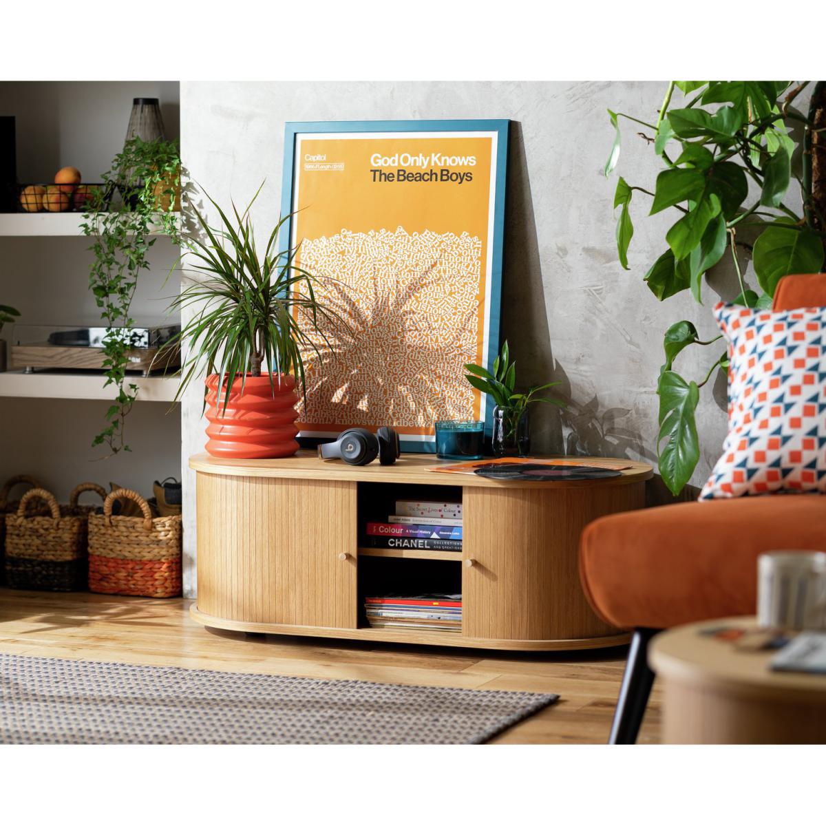 Storage with curve appeal. Our handsome oak sideboard is big enough to take on books, blankets, games and boxsets. It's a clutter collecting marvel. Need some extra help in the dining room? You can stash away tableware, glasses and linen in this contemporary curvy cupboard and still have room for more. With an adjustable shelf and easy access doors it's a showstopper of a storage solution. We love it.