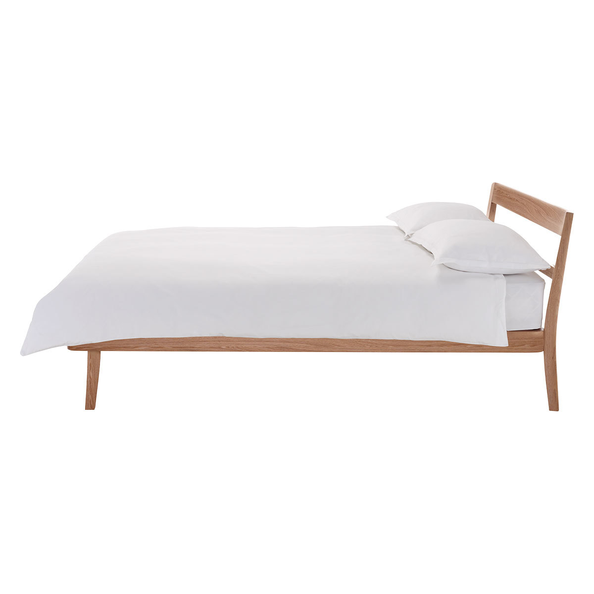 Designed by Habitat's in-house team, the Tatsuma ash double bed is a clean-lined design with a double rail headboard and elegant tapered legs. Part of the Tatsuma bedroom furniture range, the bed complements a variety of interiors and is also available in both ash and a walnut stained finish. Tatsuma is a standard UK size bed frame W135 x L190cm. This bed is designed for a UK size mattress, sold separately. The Tatsuma bedroom range extends to wardrobes, chests and bedside units.