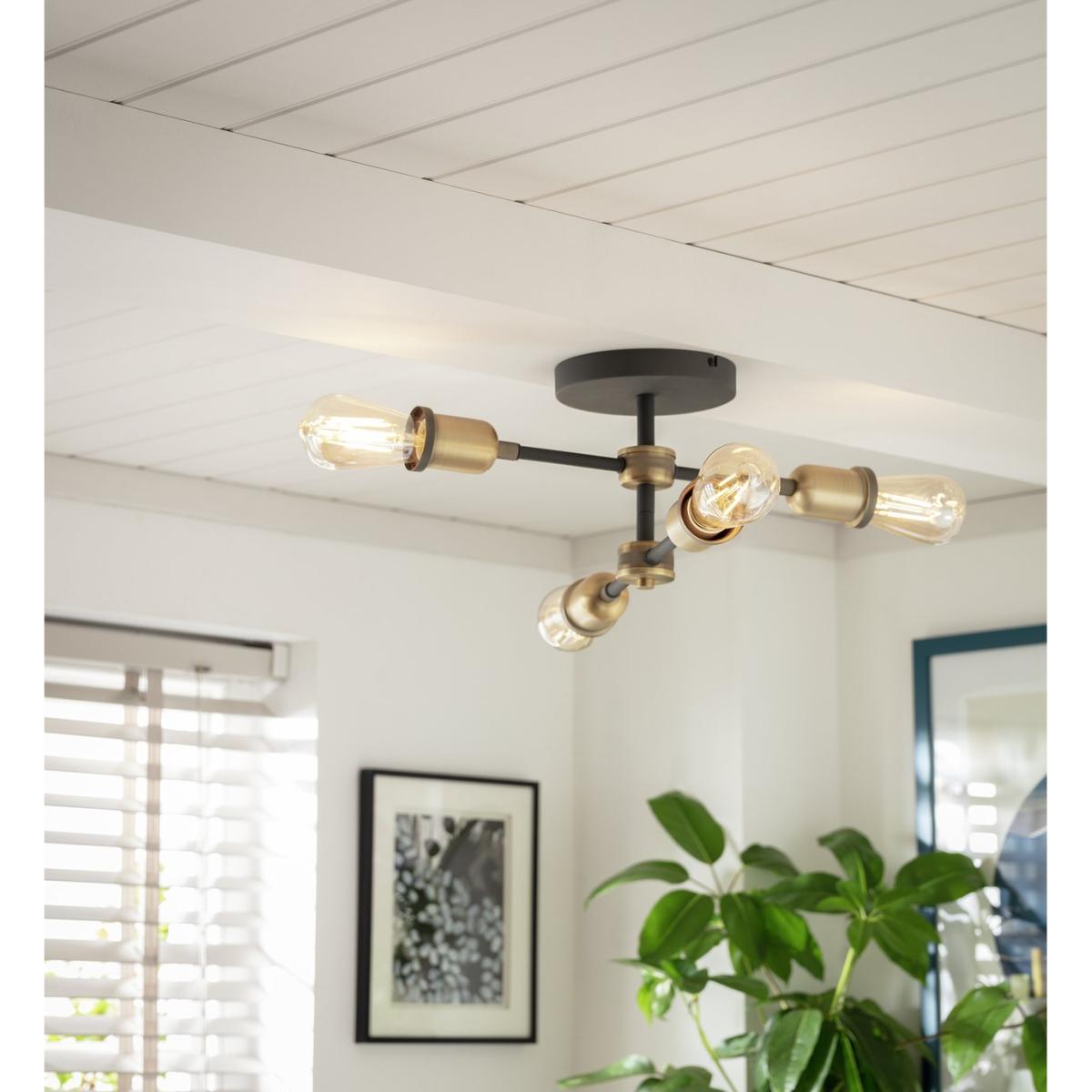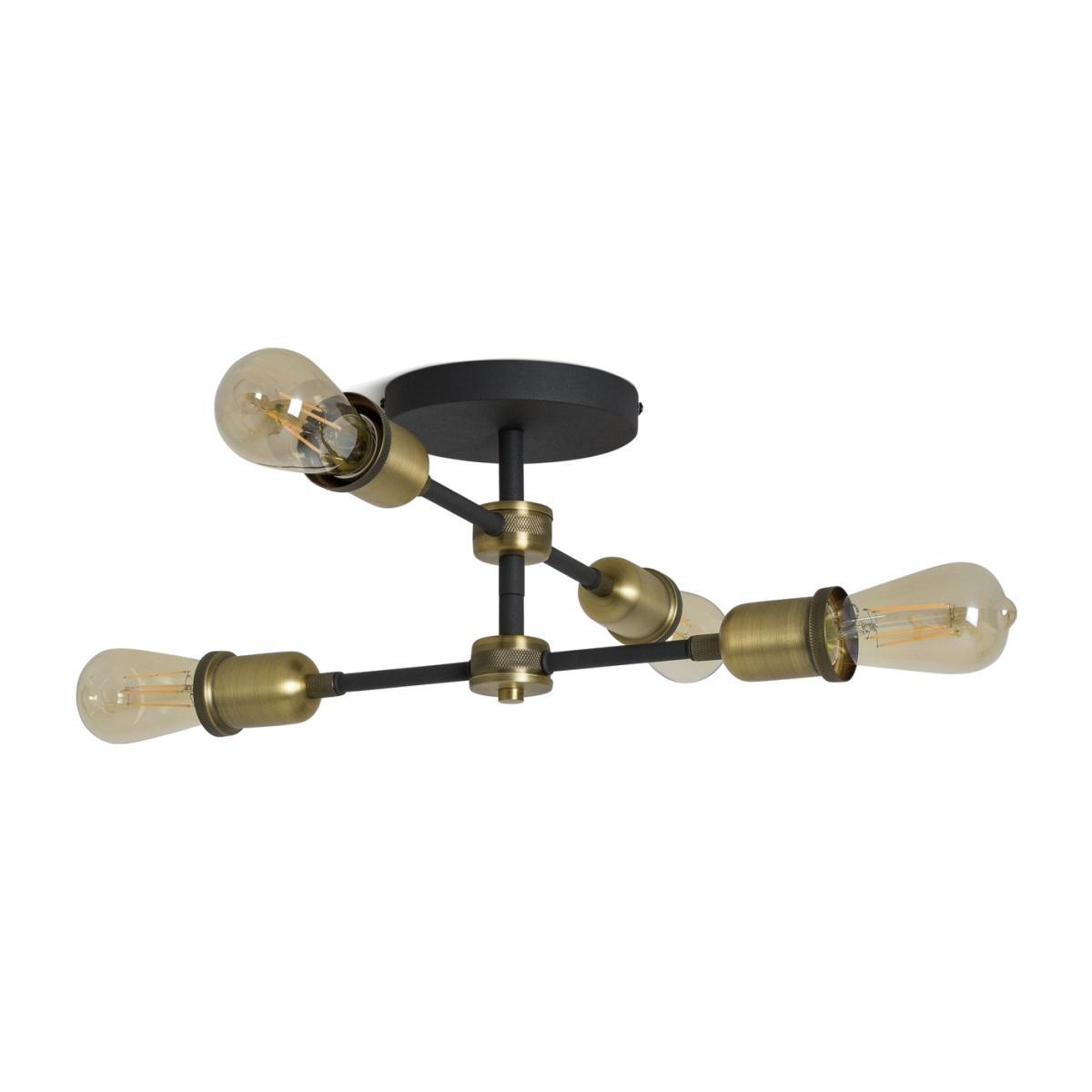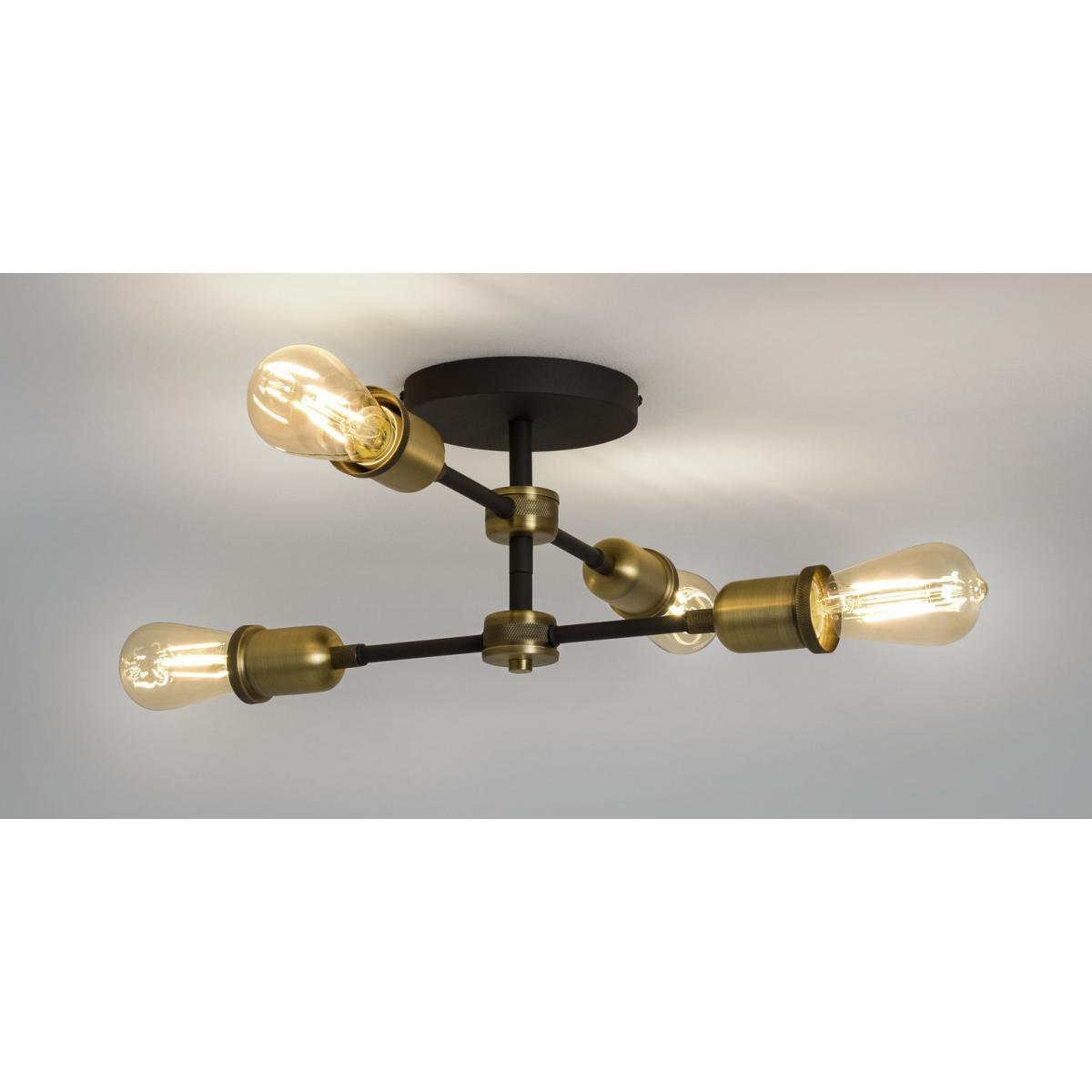 Light the way. Add a touch of industrial chic to your space with this striking, metal flush ceiling light. Four retro candle bulbs sit on a vintage style black and brass coloured cross frame. Adds a warm and welcoming golden glow to your dining room, sitting room or kitchen. Time to switch to something more stylish?