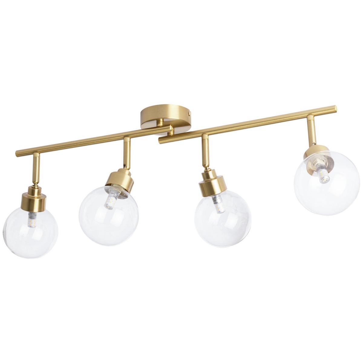 Bar lighting that's spot on for looks and practicality. Two slim gleaming arms, 4 globe glass shades, it's a case of contemporary meets classic. Each spotlight can be angled to throw light just where you want it. Made from steel with a warm brass finish. Part of the Tay collection. Dimensions: Size H24, W65, D10cm. Bulb Information: Bulbs required 4 x capsule G9 LED (not included). Recommended maximum wattage: 5 watts. Can not be used with a dimmer switch. LED bulb only. General Information: Steel. - not suitable for bathroom use. Weight: 0.85kg. Minimal assembly. Product is hard-wired into electrics. Manufacturer's 1 year guarantee.
