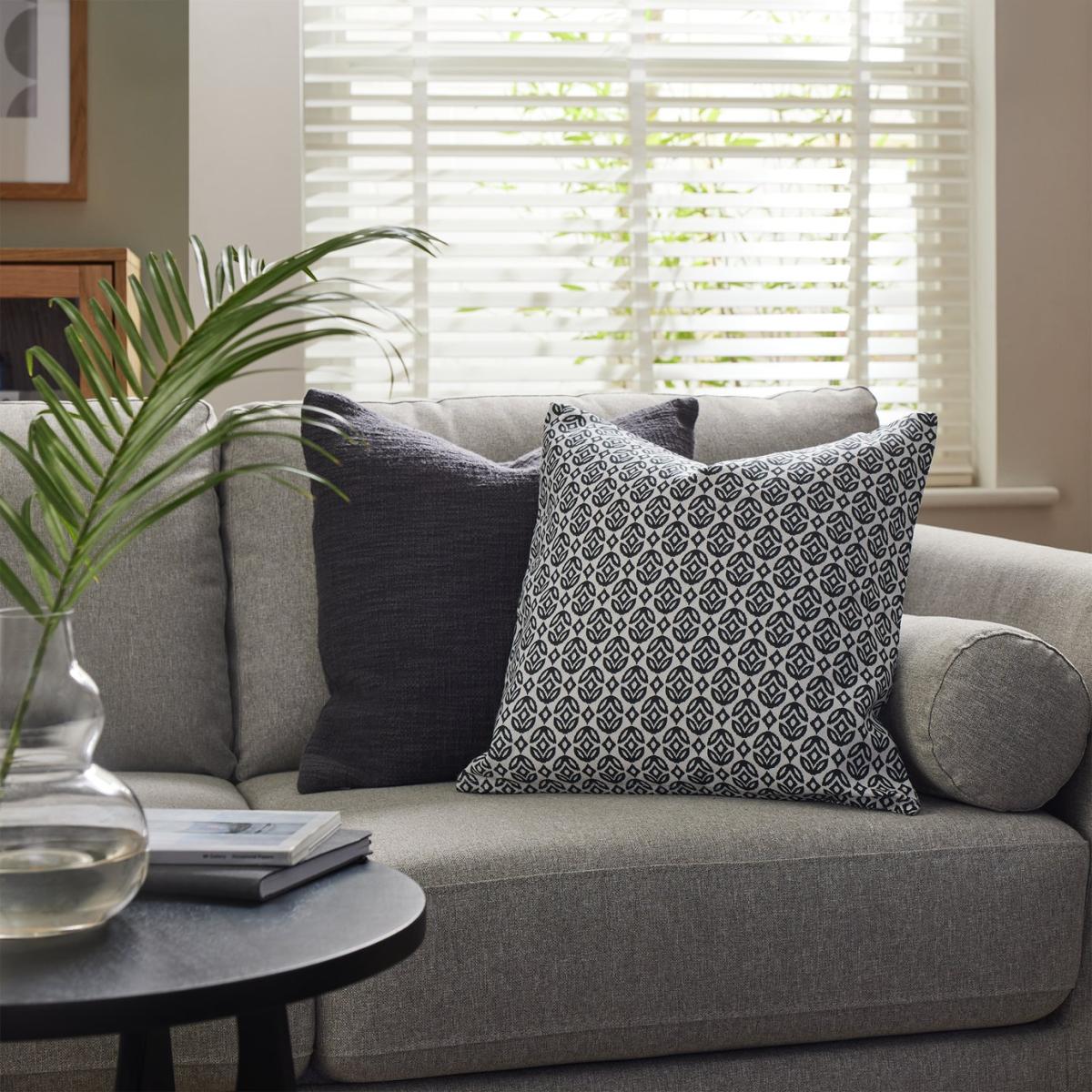 One gorgeous monochrome block print, in a different size either side, means you can flip this cushion cover to refresh the look. Smart, fresh and a timeless design. An effortless way to uplift your sofa. Zip fastening. Cover 100% Cotton. Filling 100% Polyester. Size L43, W43cm. This cover is machine washable. Suitable for tumble drying.