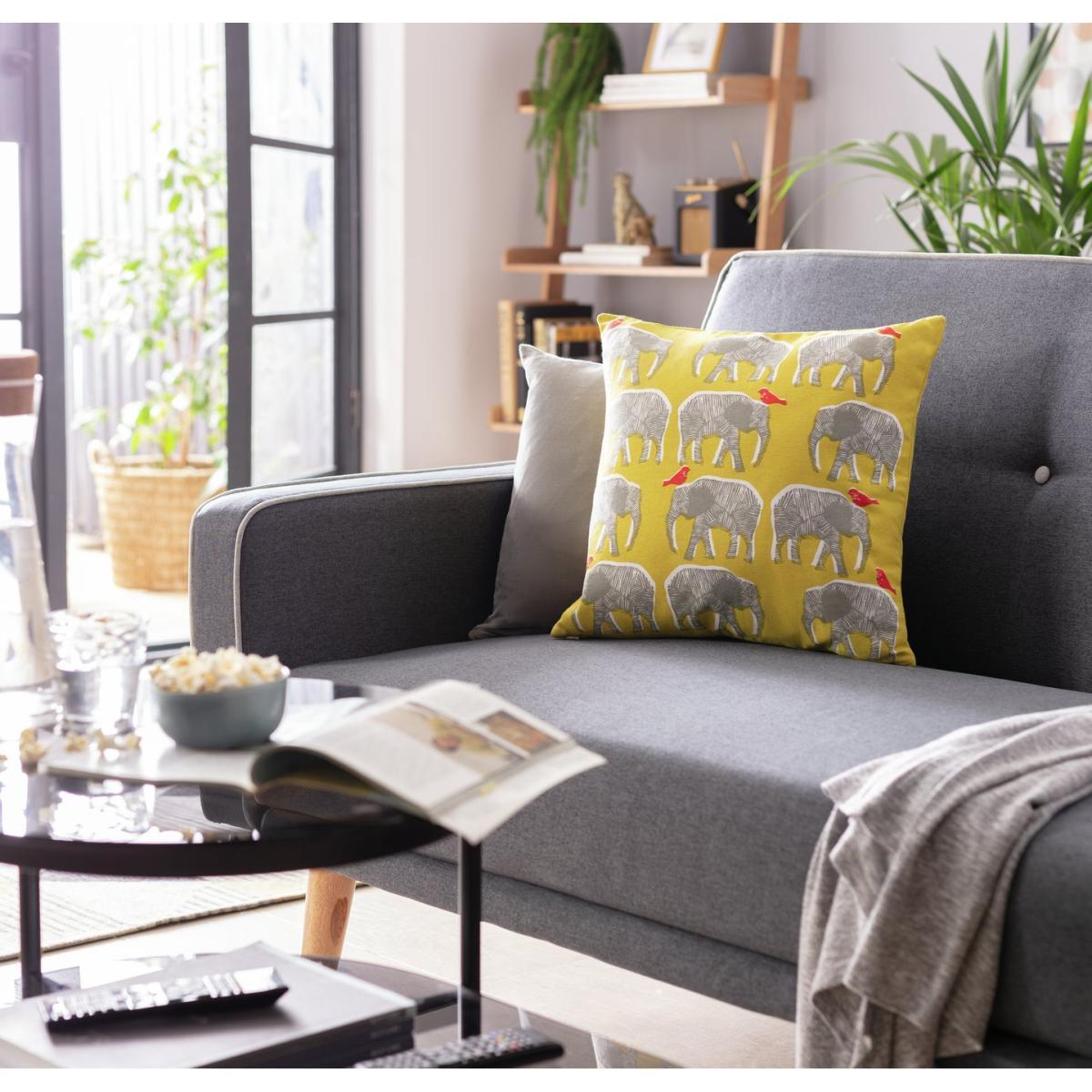 I love this bright yellow cushion for adding a lively focal point to any seating arrangement. Its bold Topsy pattern with elephants and pops of red makes it a playful yet sophisticated choice. It's particularly effective in eclectic, boho, or modern interiors where a splash of colour and pattern can lift the space. Practical styling tips include pairing it with neutral sofas or mixing it with other patterned cushions for a layered look. Its size (43x43cm) makes it versatile for accenting chairs or sofas without overwhelming the space, and the cheerful yellow adds warmth and personality to the room.