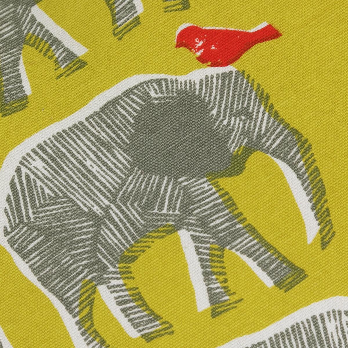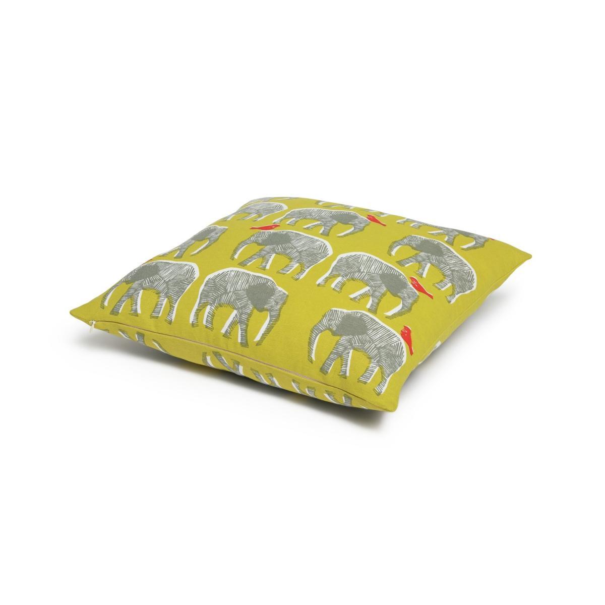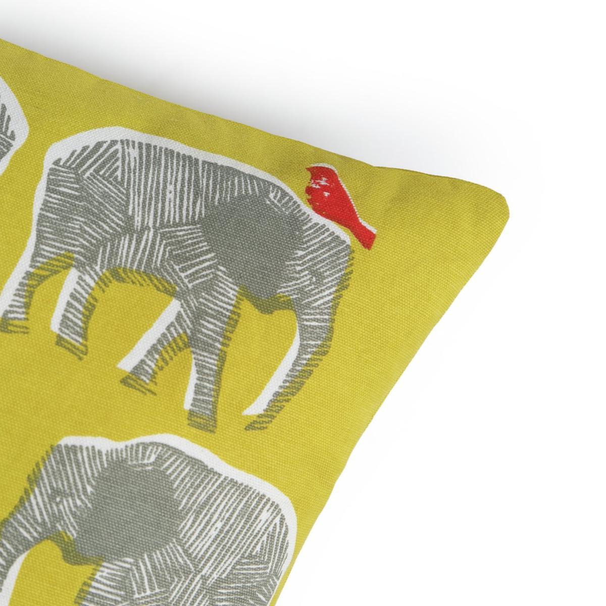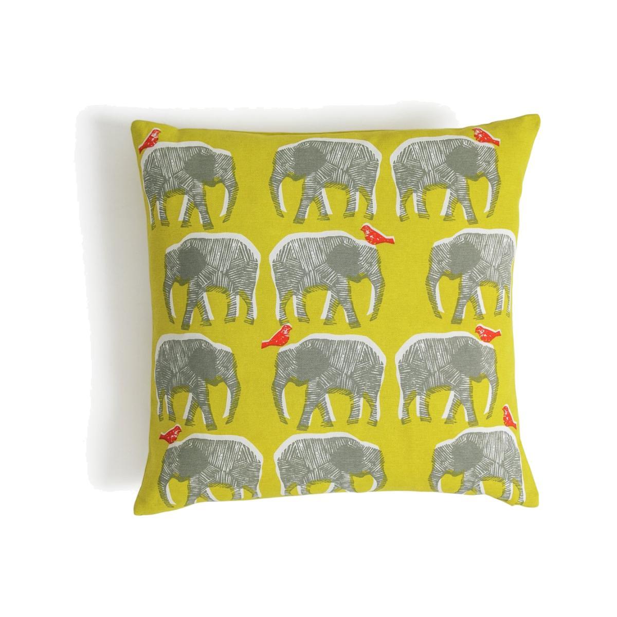Sunshine safari. In a vibrant saffron shade, the Topsy patterned cushion will liven up the lounge and brighten up the bedroom. With a fun loving elephant and bird design, this colourful cushion comes with a 100% cotton outer and plump polyester filling. A touch of the exotic you can enjoy at home.