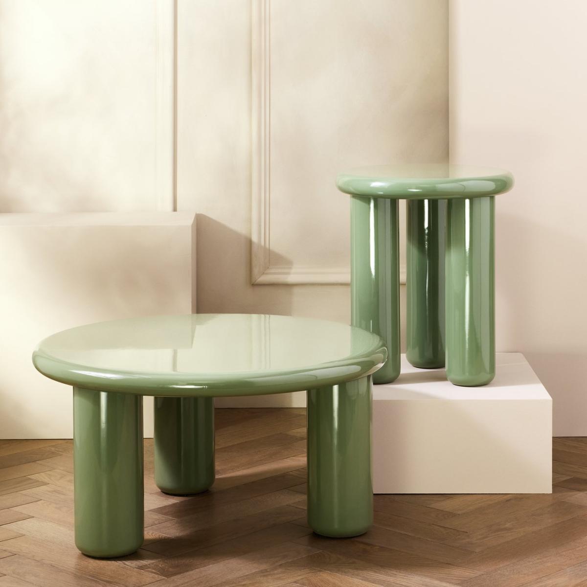 I love this little green coffee table for its bold, modern silhouette that adds a playful touch to any living space. It works particularly well in contemporary or eclectic interiors, where its vibrant hue can be a focal point or complement other colour pops. Practical styling tips include pairing it with neutral-toned sofas to let the colour stand out, or styling it with simple accessories like a small plant or a tray of books for a lived-in look. Its sturdy, rounded design also makes it versatile for both casual and more polished settings, making it a functional statement piece in any room.