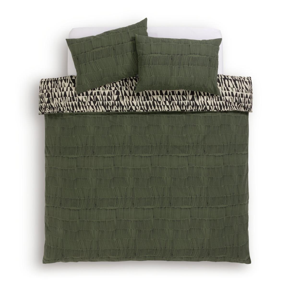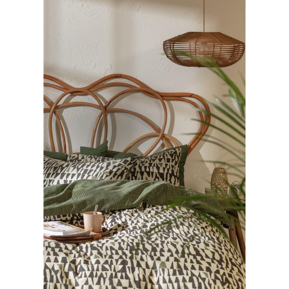 Shape up and snuggle in. Our bold triangle print duvet set brings a touch of the wilderness to your bed spread. The monochrome look is broken up with occasional dashes of green. A clean and simple design that pairs well with a natural decor. Fully reversible too, just flip for a gorgeous linear pattern when you fancy a refresh. Woven in soft polycotton, this set it lightweight and durable. Night, night.