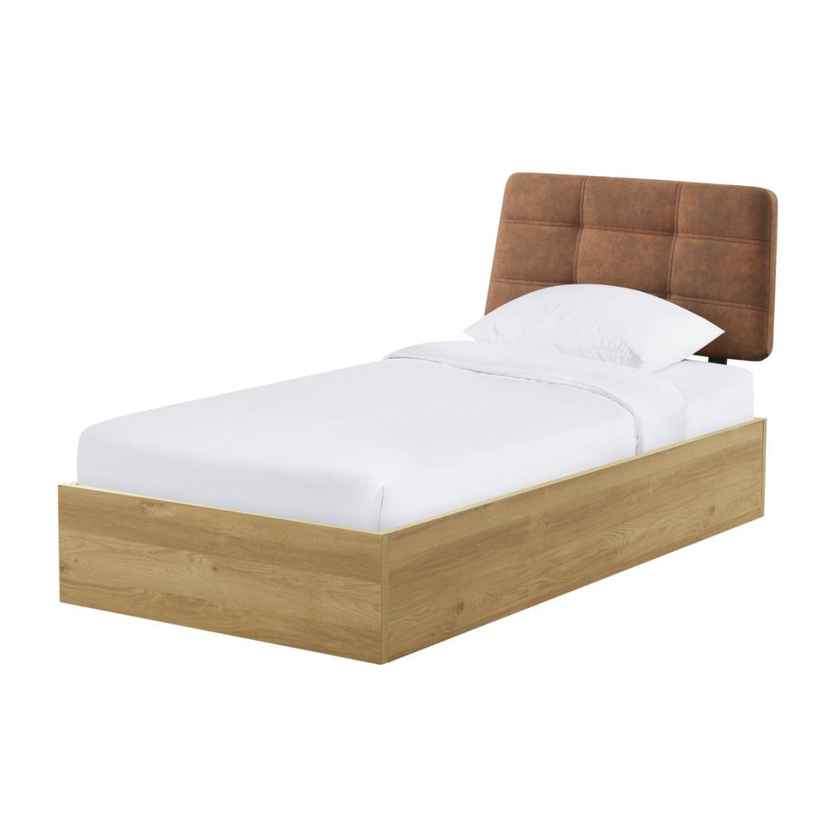 Meet Tribeca, where loft inspired, industrial styling meets ottoman. Pop it open from the foot of the bed using the ingenious gas-lift mechanism and hey presto, loads of underbed storage appears - great to keep linen or out of season clothes hidden away. A retro styled tan faux leather headboard sits on a light oak base giving a real loft apartment vibe. And sprung wooden slats provide long-lasting comfort and mattress support. This is a cool and hip option for modern living - and sleeping. The tribeca bed integrates underbed storage within it's veneered siderails & footboard, acompanied by it's distressed micro-fibre tan coloured headboard with a contemporary stitch pattern. Part of the Tribeca collection. Wooden frame. Base with sprung wooden slats. End lift. Ottoman: end opening. Storage capacity: 391 litres. Size W99, L207, H90cm. Height to top of siderail 30.5cm. Weight 36kg. Maximum user weight 110kg. Self-assembly - 2 people recommended. General Information:We are excited to be welcoming some of our favourite HOME products into the Habitat range. Your product may arrive in Habitat or HOME packaging. Manufacturer's 1 year guarantee.