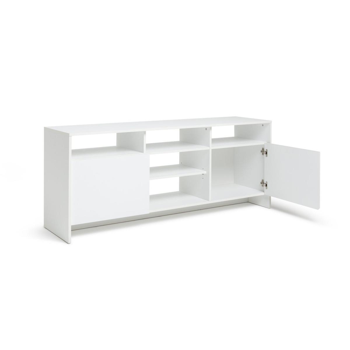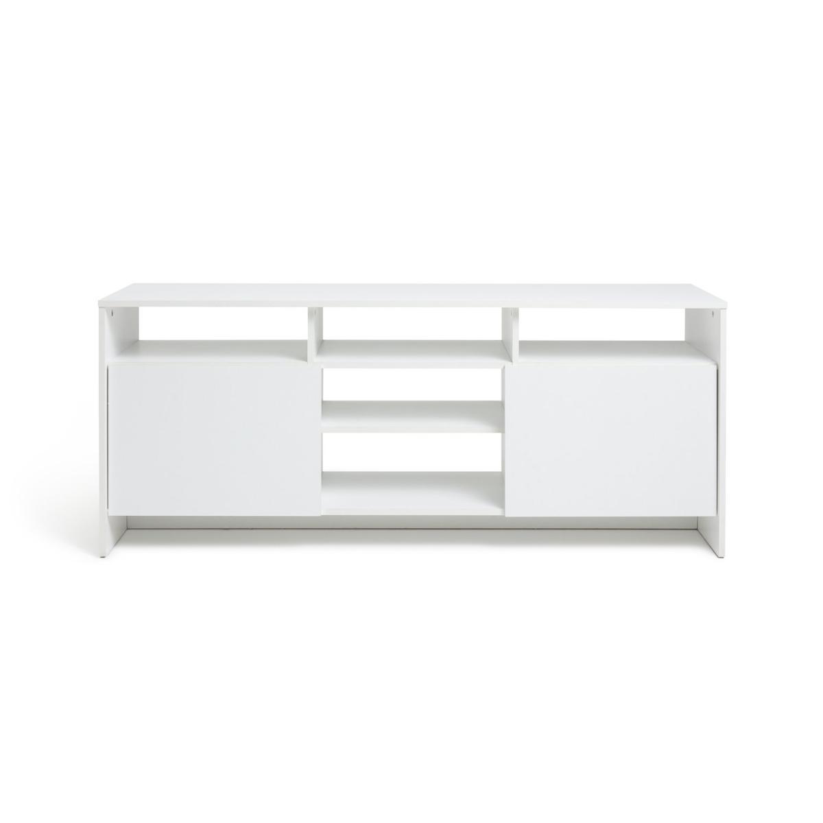 Think TV unit, think Turin. The Habitat Turin is ready to efficiently organise your entertainment space. The spacious top has ample room for a television of up to 65 inches. Below this, you've got 5 open shelves and 2 cupboards. So, you can keep your media boxes out but hide away all those technology bits you don't want on show. Finished in white, it has a clean, modern style that will go well with any dcor. Time to kick back with an episode or two of that popular new show? Part of the Turin collection. Size H 61, W 150, D 40cm. Weight 41kg. 3 shelves. 2 doors. 5 media storage sections. Largest height of media equipment sections 13.7cm. Easy cable access. Suitable for screen sizes up to 65in. Maximum weight of TV 20kg. Self-assembly - 2 people recommended. General information:We are excited to be welcoming some of our favourite HOME products into the Habitat range. Your product may arrive in Habitat or HOME packaging.