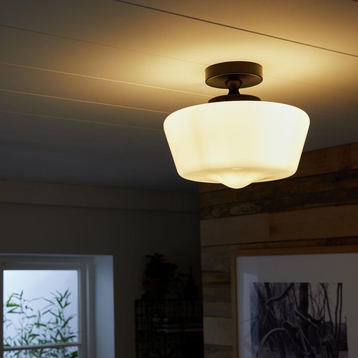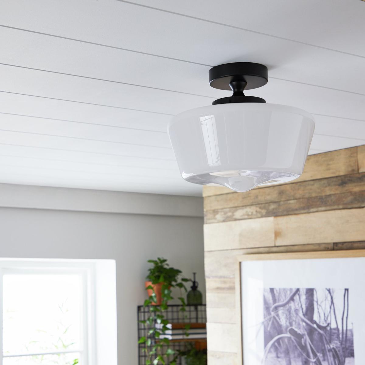 Turner has curves in all the right places. This semi-flush ceiling light strikes a fine balance between traditional design and contemporary style. With a gloss white glass shade that softly diffuses light to help create a comfortable and relaxing atmosphere. Dimensions: Size H25.6, , Diameter 30cm. None adjustable cord drop. Bulb Information: Bulbs required 1 x GLS E27 GLS bulb LED (not included). Recommended maximum wattage: 13 watts. Can not be used with a dimmer switch. LED bulb only. General Information: Metal and glass. IP rating 20 - not suitable for bathroom use. Weight: 1.67kg. Self-assembly. Product is hard-wired into electrics. We are excited to be welcoming some of our favourite HOME products into the Habitat range. Your product may arrive in Habitat or HOME packaging. Manufacturer's 1 year guarantee.