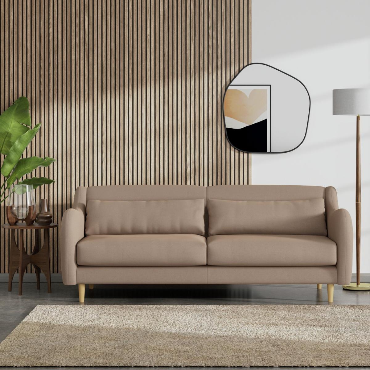 When it's made for you, you know you'll love it. The Turnmill is a highly desirable Habitat designed 3-seater sofa. From the side, the arm rest's free flowing lines are a nod to mid-century curves. And check out the extra cushion factor. Nestling against the gently reclining back are lumber supporting bolsters to relax into. In Aquaclean chenille the Turnmill combines a soft feel with easy-clean durability. An aesthetically pleasing, comfortably inviting sofa. Offering a more supportive seat, the Turnmill's cushions use high density foam core wrapped in fibre wadding to create the perfect balance of support, durability and recovery. Hand made to order in the UK, the Turnmill uses quality materials and traditional techniques for furniture that's unique to you. Available in a choice of sizes and fabrics including Aquaclean technology protection built into the yarn, which is easy to clean with just water. Part of the Turnmill collection. Material: Made from 100% polyester. Wooden feet - ash. Removable seats with foam fibre wrap filling. Removable cushion(s) with foam fibre wrap filling. Free fabric swatch available on this line. Dimensions: Size H84, W210, D99cm. Floor to seat height: 49cm. Depth of seat: 53cm. Height of seat back: 49cm. Width of seating area between arms: 188cm. Height of arm rest: 76cm. Weight: 61kg. Packaged dimensions: Package size H89, W215, D104cm. General information: Your seat cushions may feel a little firm on delivery, they are brand new and will soften with regular use over the next few months. We do more than deliver your product, we unpack, set it up and take away the packaging. Manufactured in the UK using components sourced globally. Professional clean only. Plump cushions regularly to maintain shape. Manufacturer's 15 year frame guarantee.