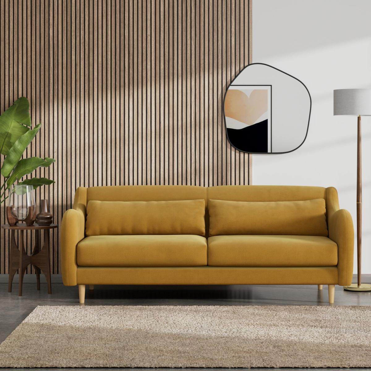 When it's made for you, you know you'll love it. The Turnmill is a highly desirable Habitat designed 3-seater sofa. From the side, the arm rest's free flowing lines are a nod to mid-century curves. And check out the extra cushion factor. Nestling against the gently reclining back are lumber supporting bolsters to relax into. In a textured weave, the Turnmill takes on a soft, tactile feel. An aesthetically pleasing, comfortably inviting sofa. Offering a more supportive seat, the Turnmill's cushions use high density foam core wrapped in fibre wadding to create the perfect balance of support, durability and recovery. Hand made to order in the UK, the Turnmill uses quality materials and traditional techniques for furniture that's unique to you. Available in a choice of sizes and fabrics including Aquaclean technology protection built into the yarn, which is easy to clean with just water. Part of the Turnmill collection. Material: Made from 100% polyester. Wooden feet - ash. Removable seats with foam fibre wrap filling. Removable cushion(s) with foam fibre wrap filling. Free fabric swatch available on this line. Dimensions: Size H84, W210, D99cm. Floor to seat height: 49cm. Depth of seat: 53cm. Height of seat back: 49cm. Width of seating area between arms: 188cm. Height of arm rest: 76cm. Weight: 61kg. Packaged dimensions: Package size H89, W215, D104cm. General information: FSC certified meaning the materials used for this product are responsibly sourced. We do more than deliver your product, we unpack, set it up and take away the packaging. Manufactured in the UK using components sourced globally. Professional clean only. Plump cushions regularly to maintain shape. Manufacturer's 15 year frame guarantee.
