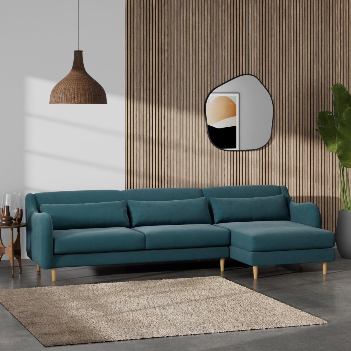 When it's made for you, you know you'll love it. The Turnmill is a highly desirable Habitat designed 4-seater right hand chaise. From the side, the arm rest's free flowing lines are a nod to mid-century curves. And check out the extra cushion factor. Nestling against the gently reclining back are lumber supporting bolsters to relax into. In a textured weave, the Turnmill takes on a soft, tactile feel. An aesthetically pleasing, comfortably inviting sofa. Offering a more supportive seat, the Turnmill's cushions use high density foam core wrapped in fibre wadding to create the perfect balance of support, durability and recovery. Hand made to order in the UK, the Turnmill uses quality materials and traditional techniques for furniture that's unique to you. Available in a choice of sizes and fabrics including Aquaclean technology protection built into the yarn, which is easy to clean with just water. Part of the Turnmill collection. Right hand corner. Material: Made from 100% polyester. Wooden feet. Removable seats with foam fibre wrap filling. Removable cushion(s) with foam fibre wrap filling. Free fabric swatch available on this line. Dimensions: Size H84, longer width 304,. Floor to seat height: 49cm. Depth of seat: 53cm. Height of seat back: 49cm. Longer seating area width between arms: 282cm. Height of arm rest: 76cm. Weight: 98kg. Packaged dimensions: Package size H89, W204, D104cm. Second package size H89, W110, D158cm. General information: FSC certified meaning the materials used for this product are responsibly sourced. Your seat cushions may feel a little firm on delivery, they are brand new and will soften with regular use over the next few months. We do more than deliver your product, we unpack, set it up and take away the packaging. Manufactured in the UK using components sourced globally. Professional clean only. Plump cushions regularly to maintain shape. Manufacturer's 15 year frame guarantee.