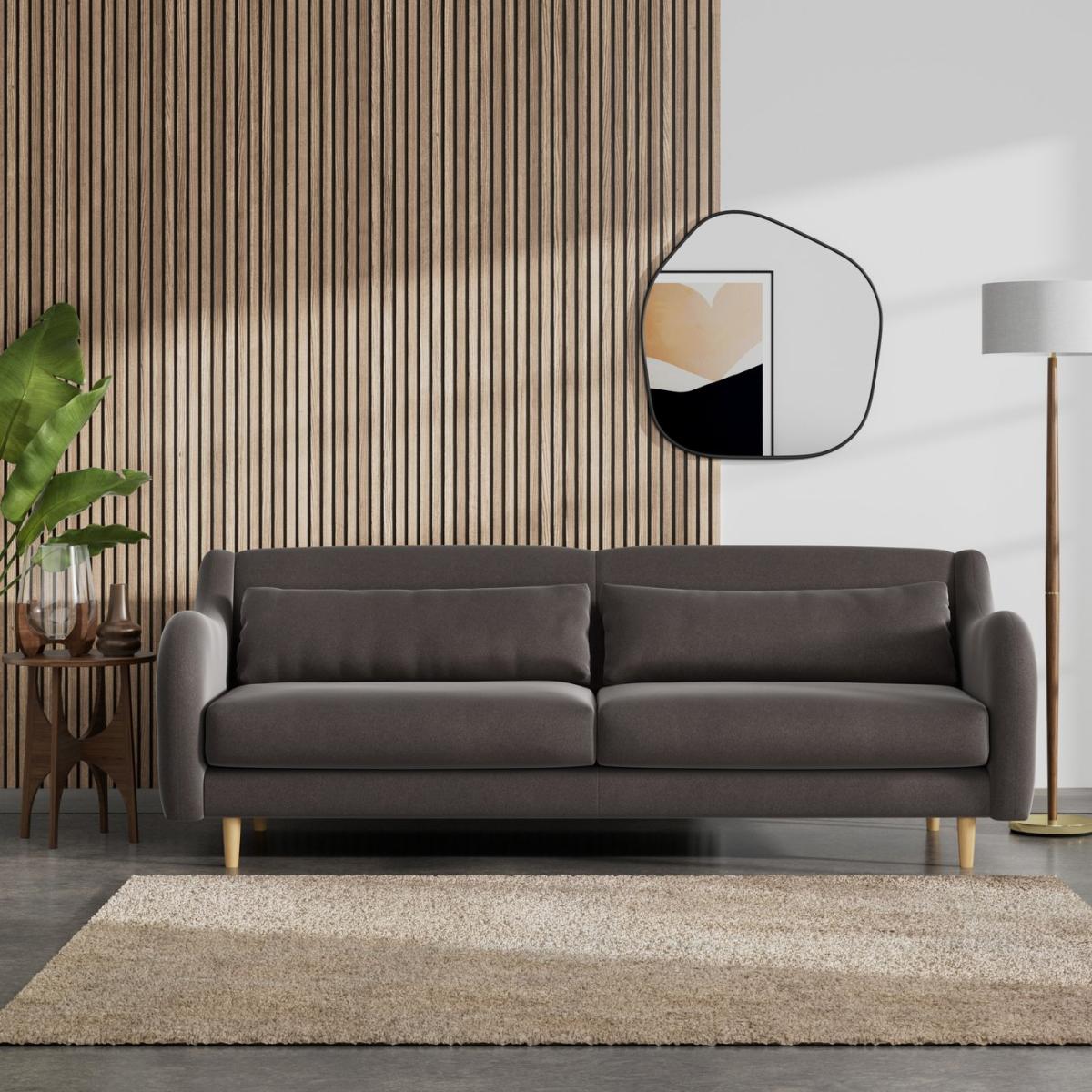 When it's made for you, you know you'll love it. The Turnmill is a highly desirable Habitat designed 4-seater sofa. From the side, the arm rest's free flowing lines are a nod to mid-century curves. And check out the extra cushion factor. Nestling against the gently reclining back are lumber supporting bolsters to relax into. In a rich velvet, the Turnmill takes on a luxe look. An aesthetically pleasing, comfortably inviting sofa. Offering a more supportive seat, the Turnmill's cushions use high density foam core wrapped in fibre wadding to create the perfect balance of support, durability and recovery. Hand made to order in the UK, the Turnmill uses quality materials and traditional techniques for furniture that's unique to you. Available in a choice of sizes and fabrics including Aquaclean technology protection built into the yarn, which is easy to clean with just water. Part of the Turnmill collection. Material: Made from 100% recycled polyester. Wooden feet - ash. Removable seats with foam fibre wrap filling. Removable cushion(s) with foam fibre wrap filling. Free fabric swatch available on this line. Dimensions: Size H84, W230, D99cm. Floor to seat height: 49cm. Depth of seat: 53cm. Height of seat back: 49cm. Width of seating area between arms: 208cm. Height of arm rest: 76cm. Weight: 65kg. Packaged dimensions: Package size H89, W235, D104cm. General information: FSC certified meaning the materials used for this product are responsibly sourced. We do more than deliver your product, we unpack, set it up and take away the packaging. Manufactured in the UK using components sourced globally. Professional clean only. Plump cushions regularly to maintain shape. Manufacturer's 15 year frame guarantee.
