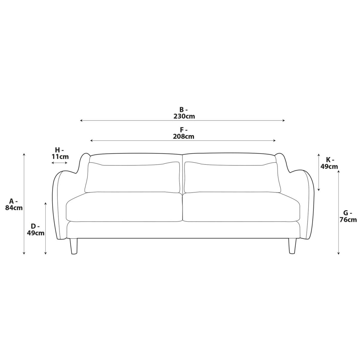 When it's made for you, you know you'll love it. The Turnmill is a highly desirable Habitat designed 4-seater sofa. From the side, the arm rest's free flowing lines are a nod to mid-century curves. And check out the extra cushion factor. Nestling against the gently reclining back are lumber supporting bolsters to relax into. In a rich velvet, the Turnmill takes on a luxe look. An aesthetically pleasing, comfortably inviting sofa. Offering a more supportive seat, the Turnmill's cushions use high density foam core wrapped in fibre wadding to create the perfect balance of support, durability and recovery. Hand made to order in the UK, the Turnmill uses quality materials and traditional techniques for furniture that's unique to you. Available in a choice of sizes and fabrics including Aquaclean technology protection built into the yarn, which is easy to clean with just water. Part of the Turnmill collection. Material: Made from 100% recycled polyester. Wooden feet - ash. Removable seats with foam fibre wrap filling. Removable cushion(s) with foam fibre wrap filling. Free fabric swatch available on this line. Dimensions: Size H84, W230, D99cm. Floor to seat height: 49cm. Depth of seat: 53cm. Height of seat back: 49cm. Width of seating area between arms: 208cm. Height of arm rest: 76cm. Weight: 65kg. Packaged dimensions: Package size H89, W235, D104cm. General information: FSC certified meaning the materials used for this product are responsibly sourced. We do more than deliver your product, we unpack, set it up and take away the packaging. Manufactured in the UK using components sourced globally. Professional clean only. Plump cushions regularly to maintain shape. Manufacturer's 15 year frame guarantee.